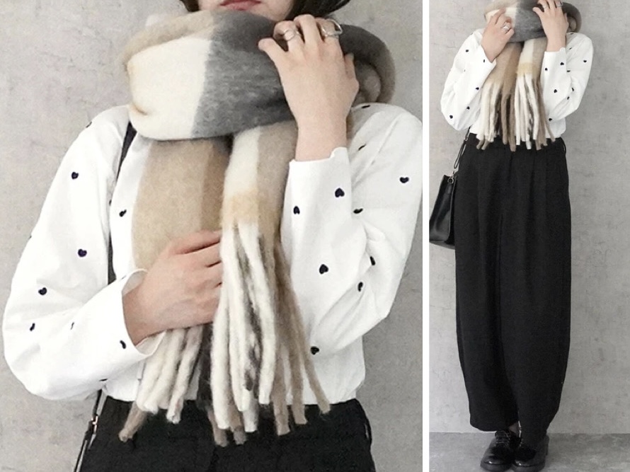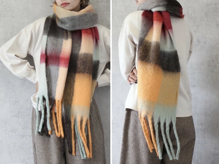 大きめのチェック柄が印象的なマフラー