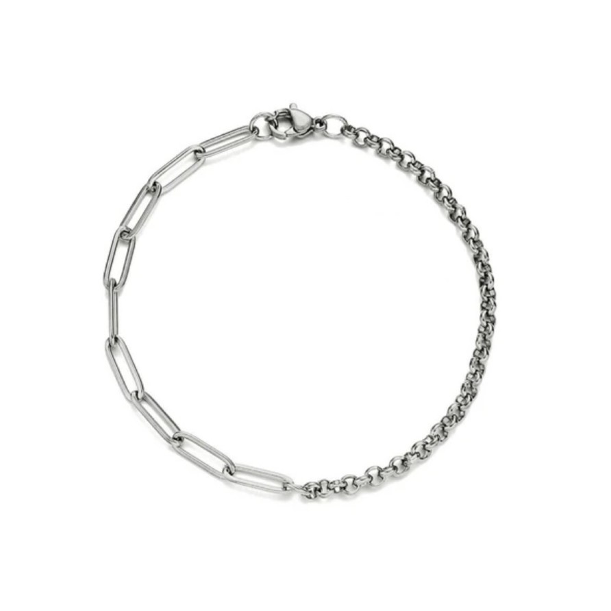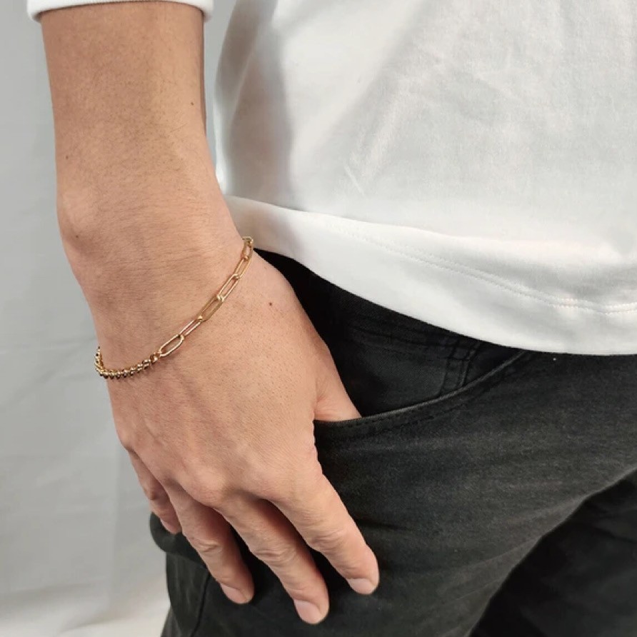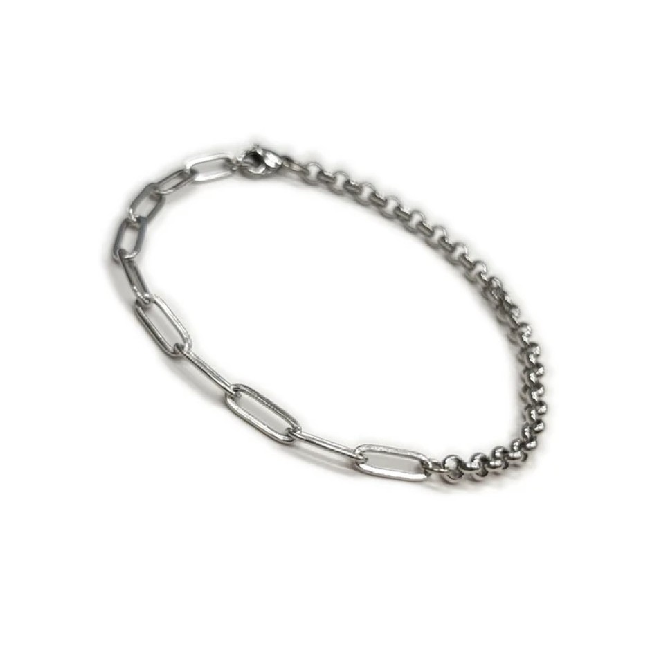 キズに強い美しい表面と丈夫な素材感、アレルギーを起こしにくいStainlessSteel素材を使用したチェーンブレスレット。