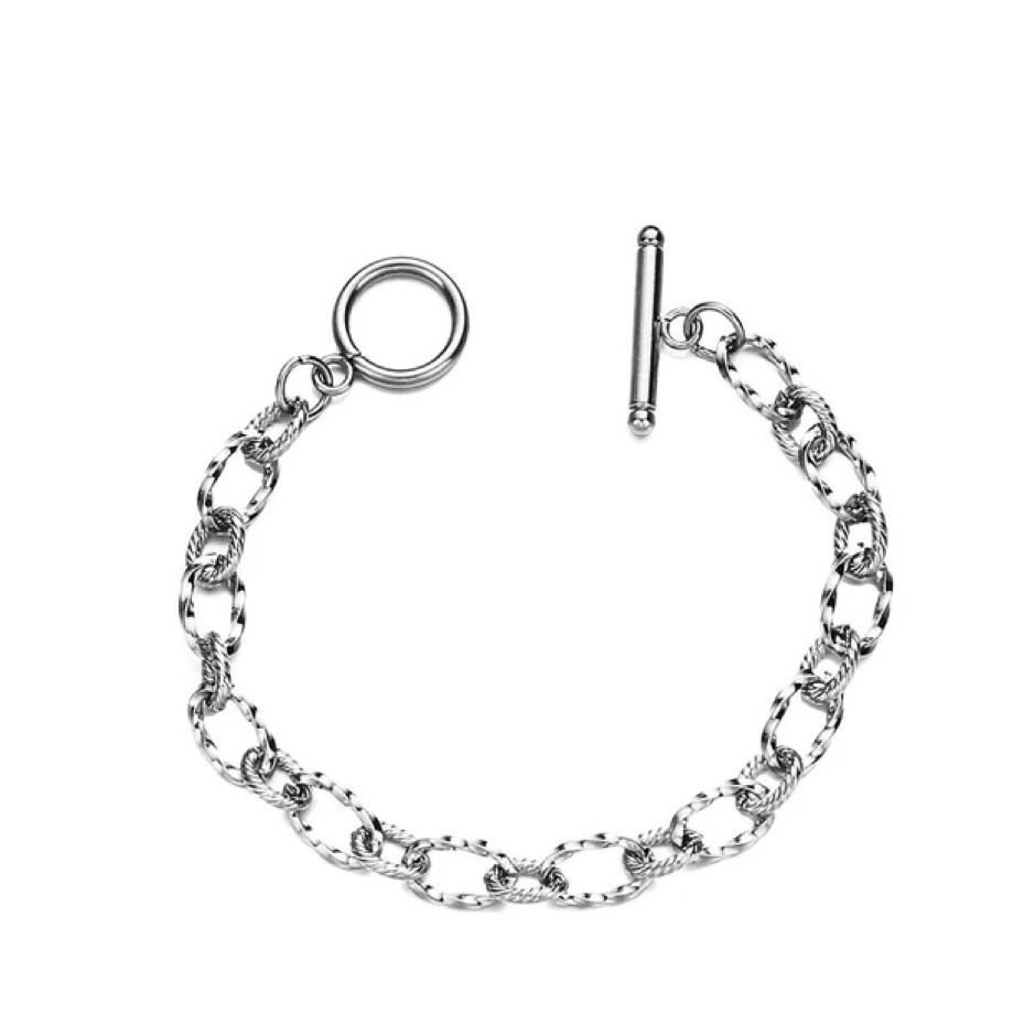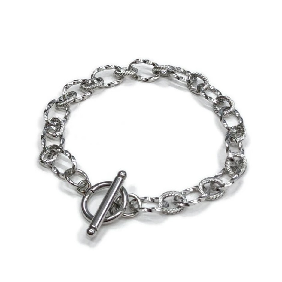 キズに強い美しい表面と丈夫な素材感、アレルギーを起こしにくいStainlessSteel素材を使用したチェーンブレスレット。