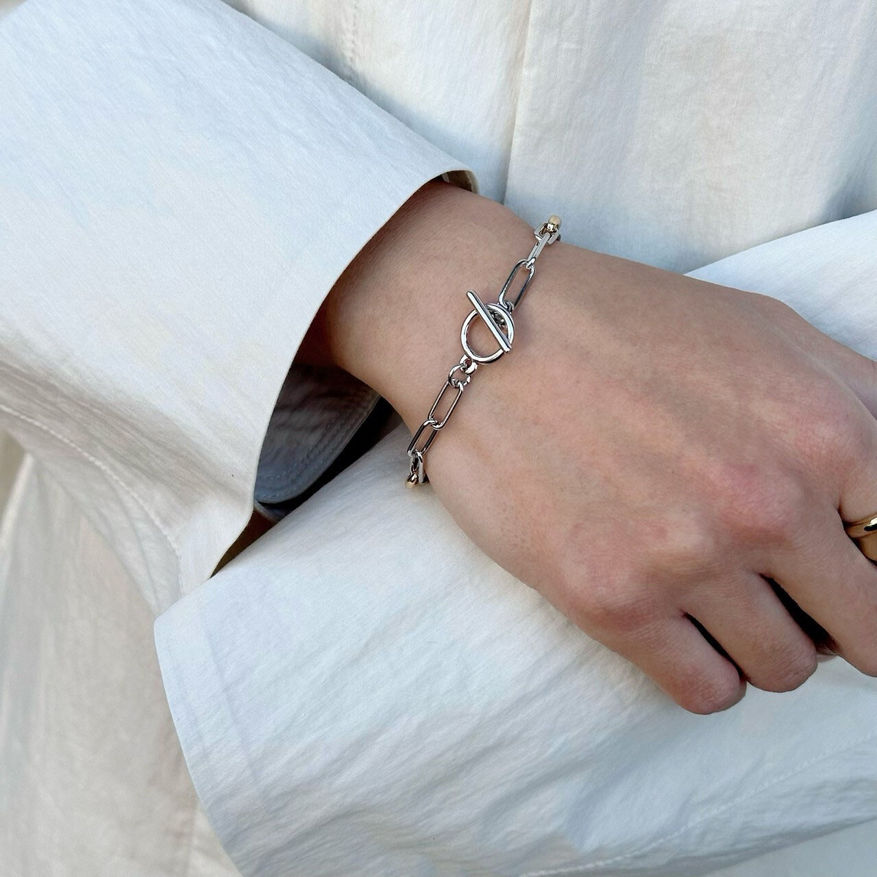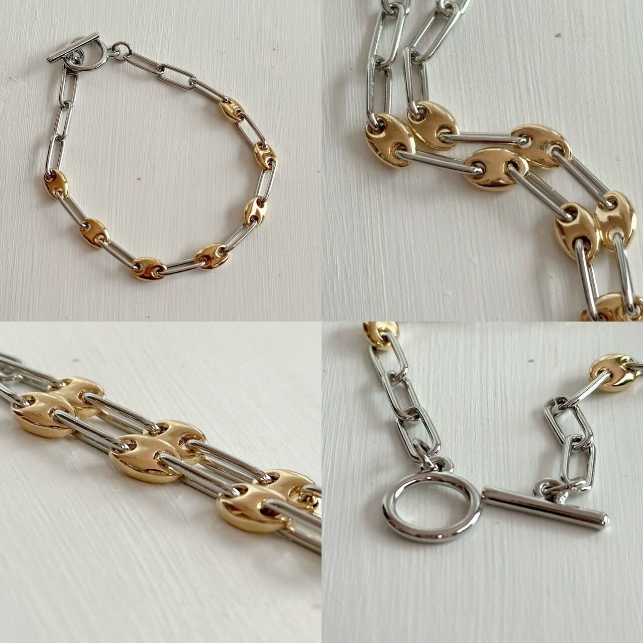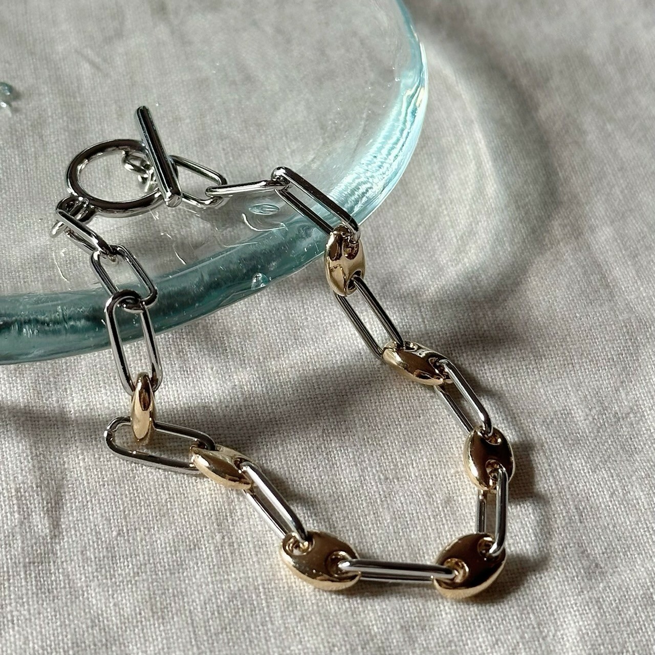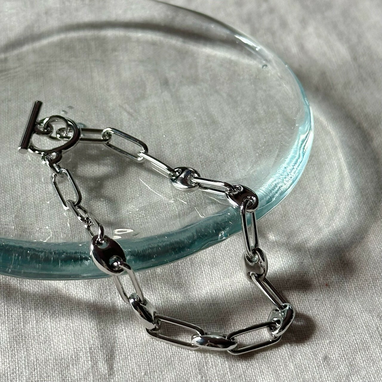 ぷっくりとしたモチーフチェーンがシンプルながらも存在感のある一品。
