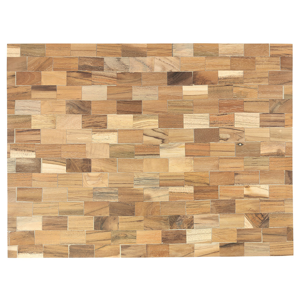 1つずつ色合いや木目の異なるチーク材をタイル状に組み合わせたランチマット。