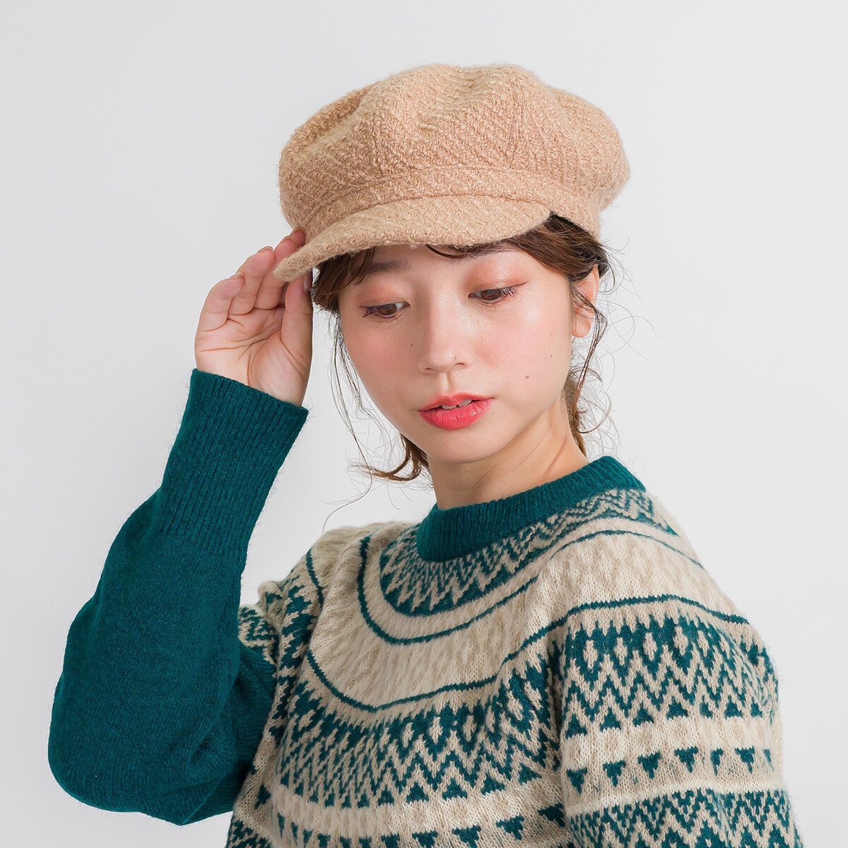 きれいな織り目で上品な印象をプラスしてくれるツイードキャスケット。