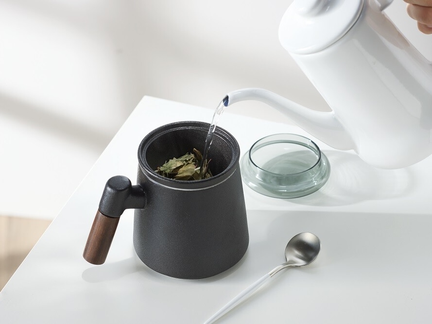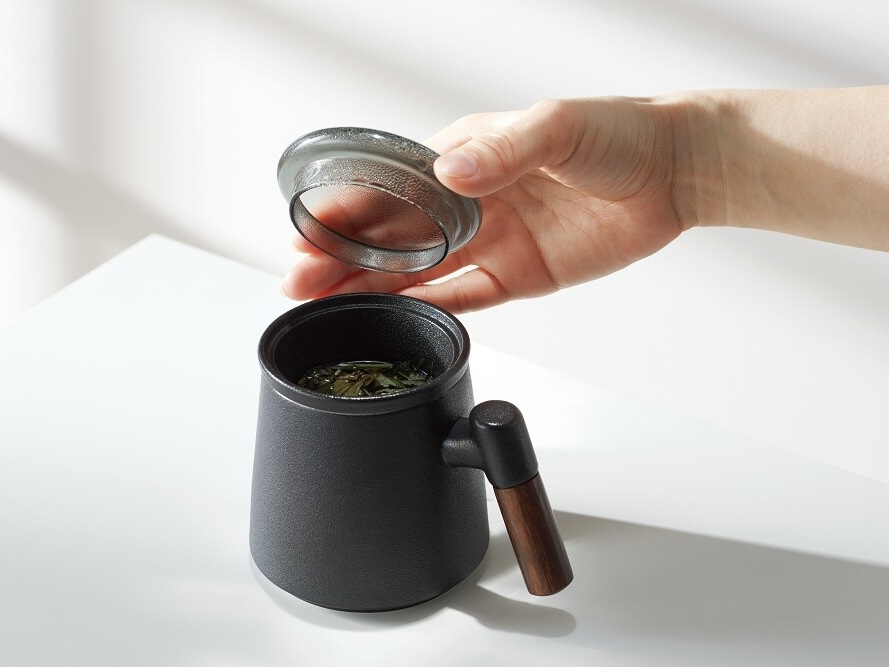 ティーポットがなくてもお茶が楽しめる機能性と、異素材が絶妙にミックスされた格好良さを併せ持っています。