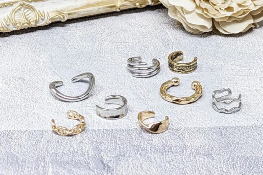 ピアスホールがなくても耳のすきなところにはめるだけで付けられるイヤーアクセサリー。