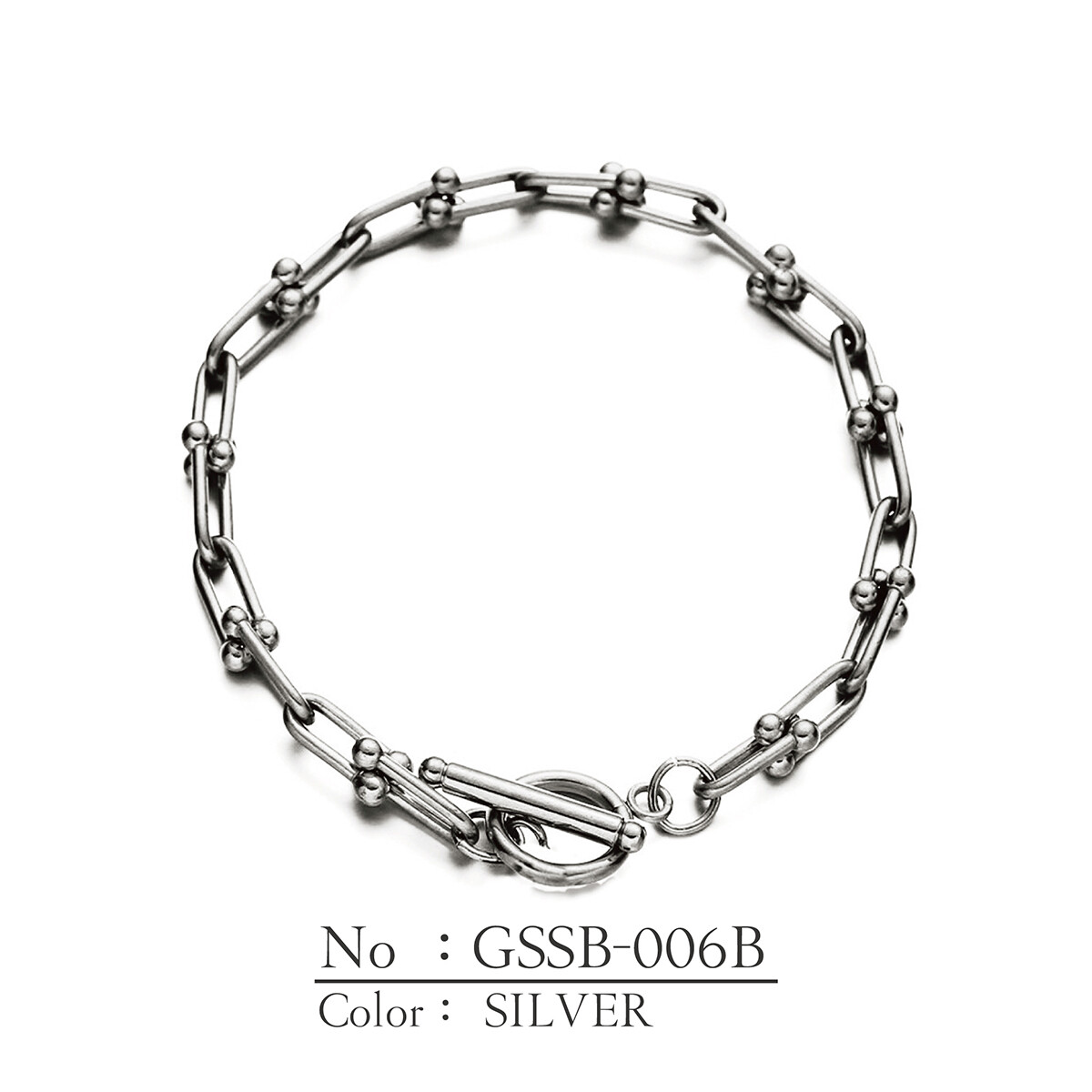 キズに強い美しい表面と丈夫な素材感、アレルギーを起こしにくいStainlessSteel素材を使用したチェーンブレスレットシリーズ。
