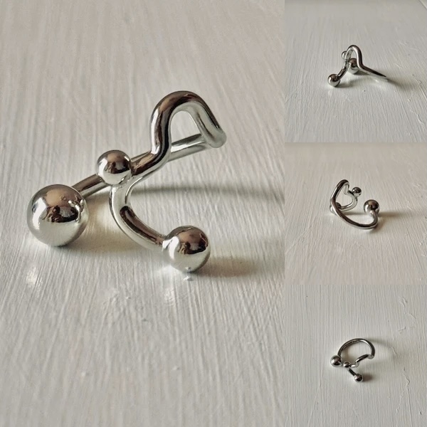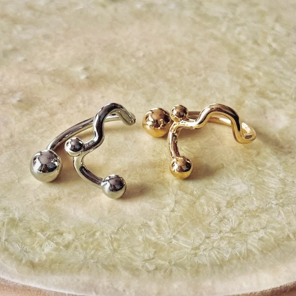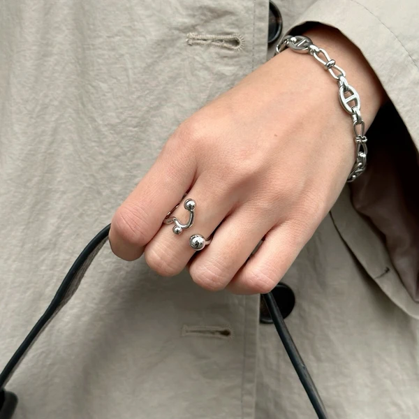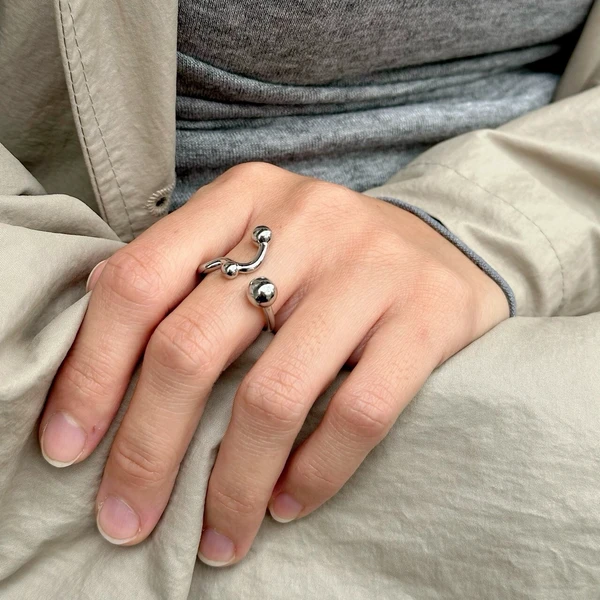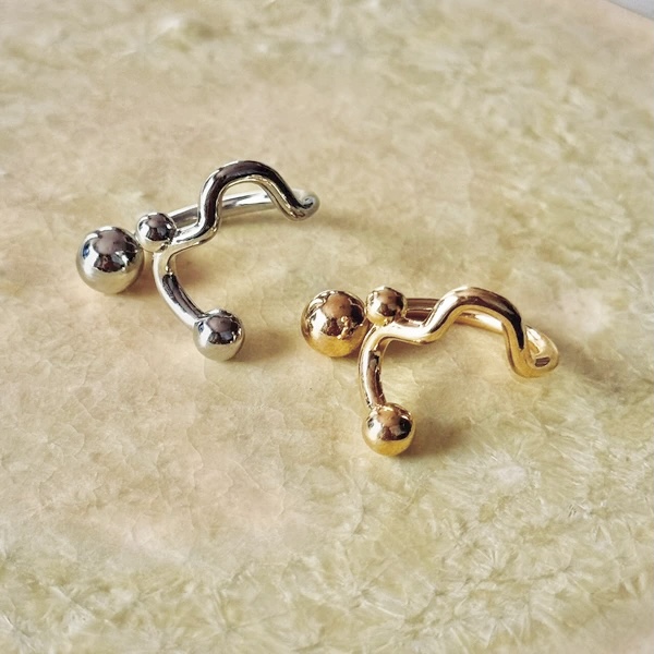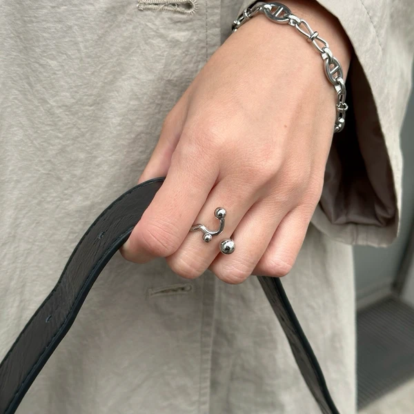 ニュアンスラインの先端にメタルボールを付けた、視線を集めるデザインリング