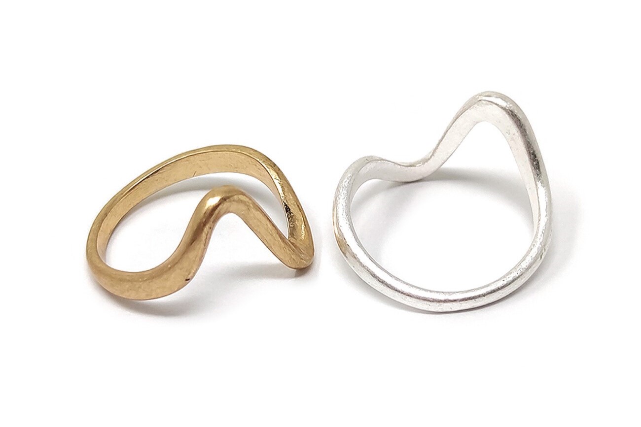 大きくカーブを描いたデザインが特徴的な変形デザインリング。