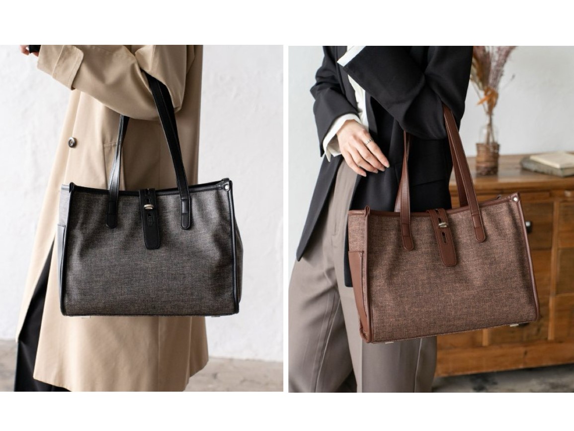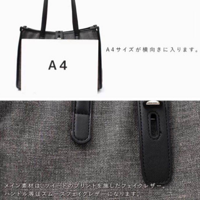 まるでツイード素材のように見えるフェイクレザーを使用したトートバッグ