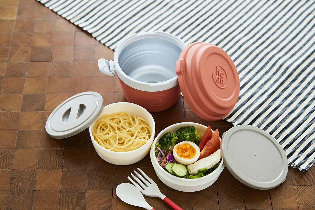 ステンレス真空二重構造でおいしく保温できるバケツ型のランチジャー。