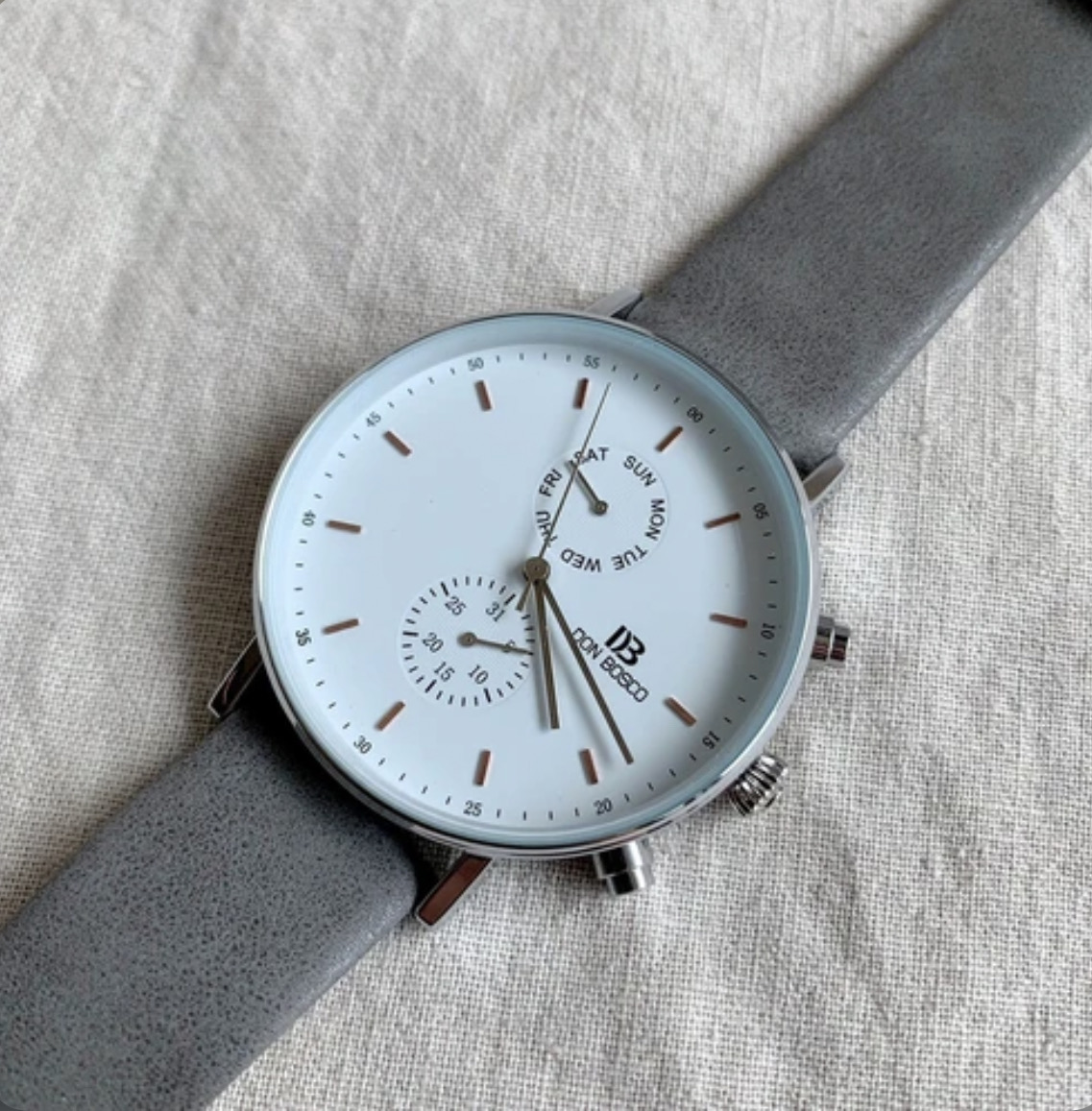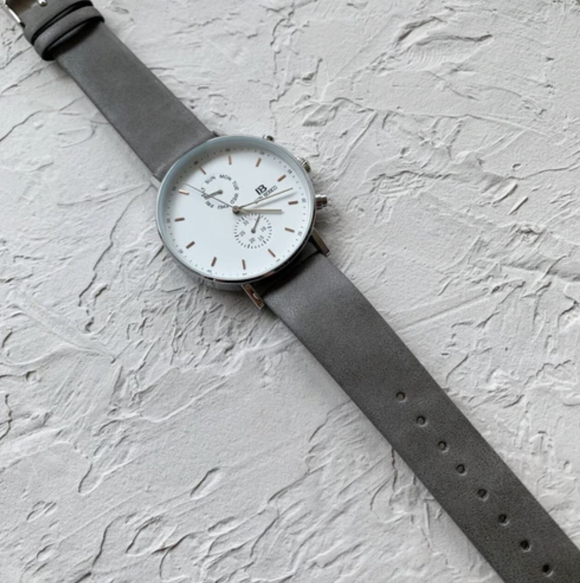 ビッグフェイスのスモールセコンド付き腕時計
