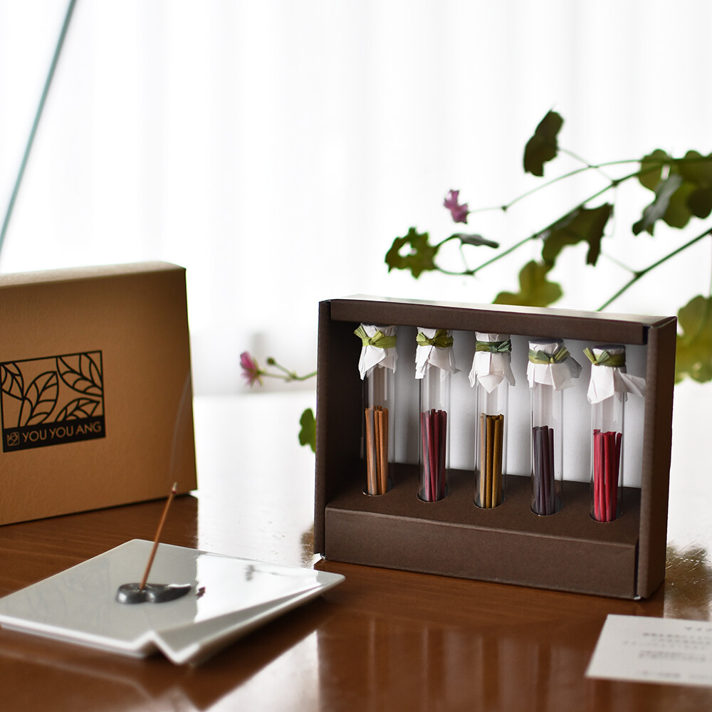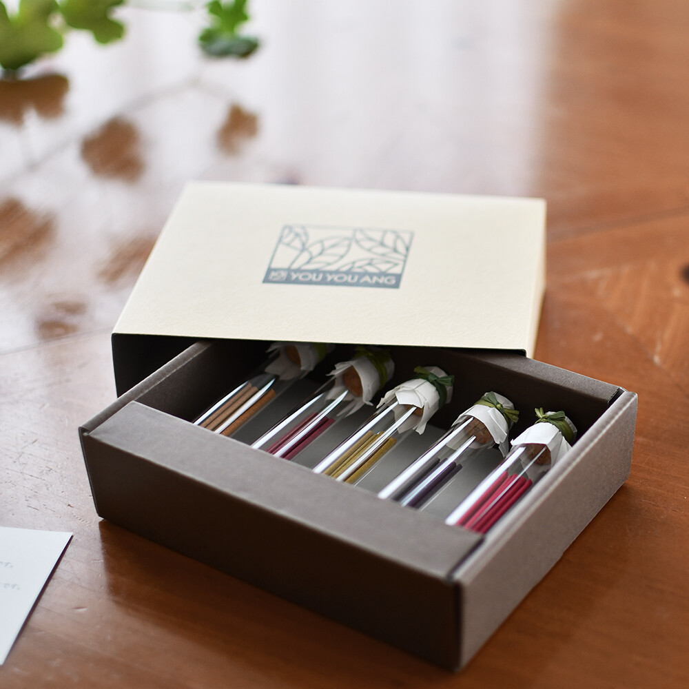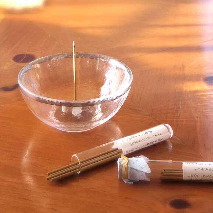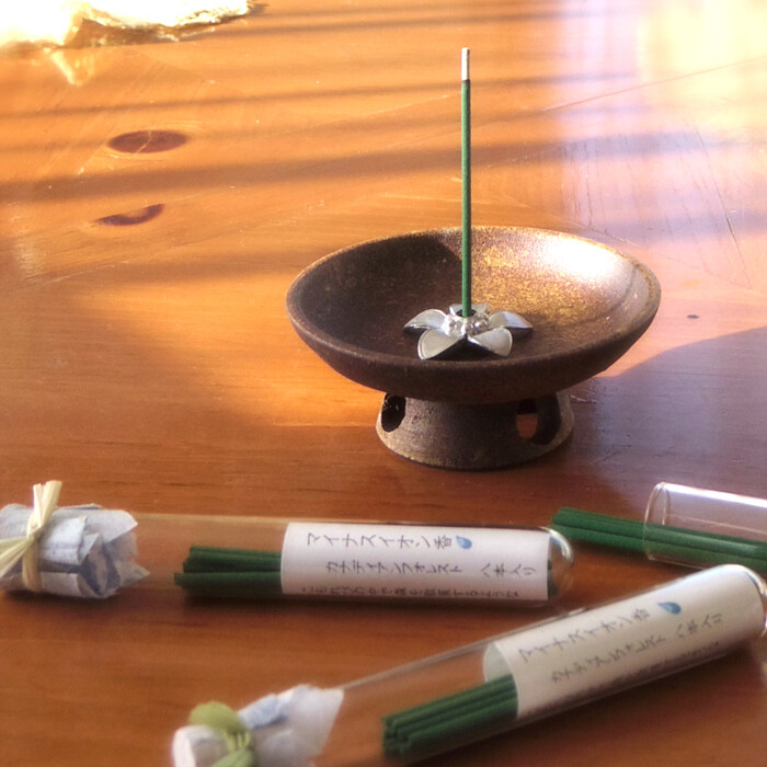 細ビンのお香5本と香立付き