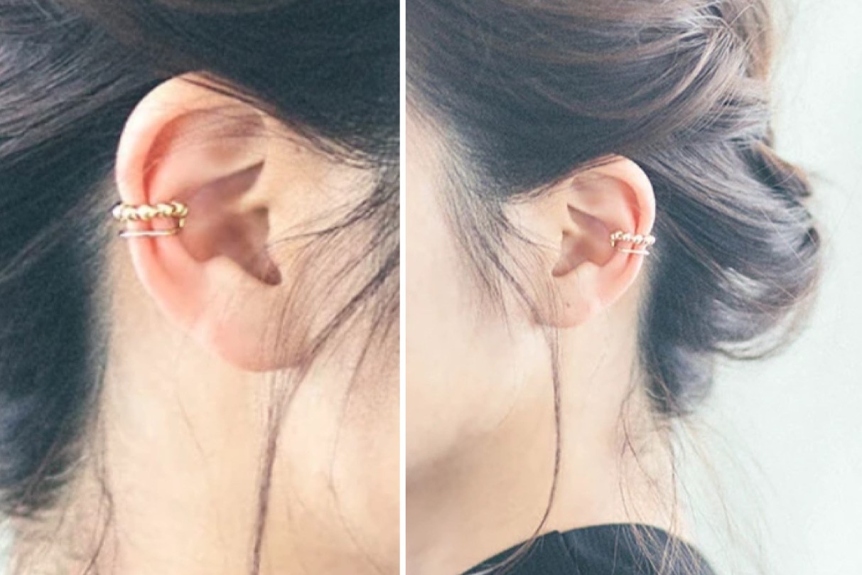 ころころしたメタルピーズがポイントになったイヤーカフ。1点投入で顔周りに可愛さとこなれ感を演出してくれます♪