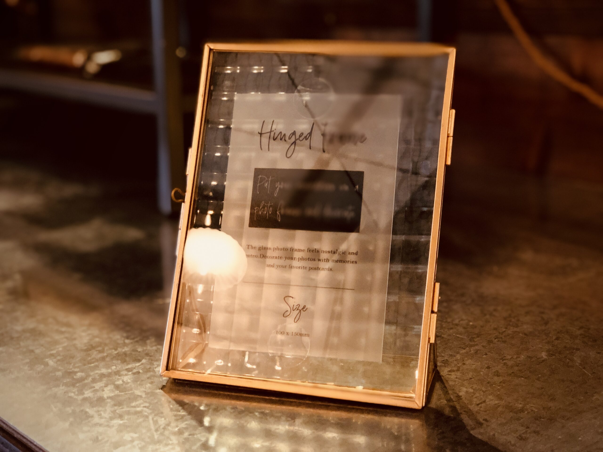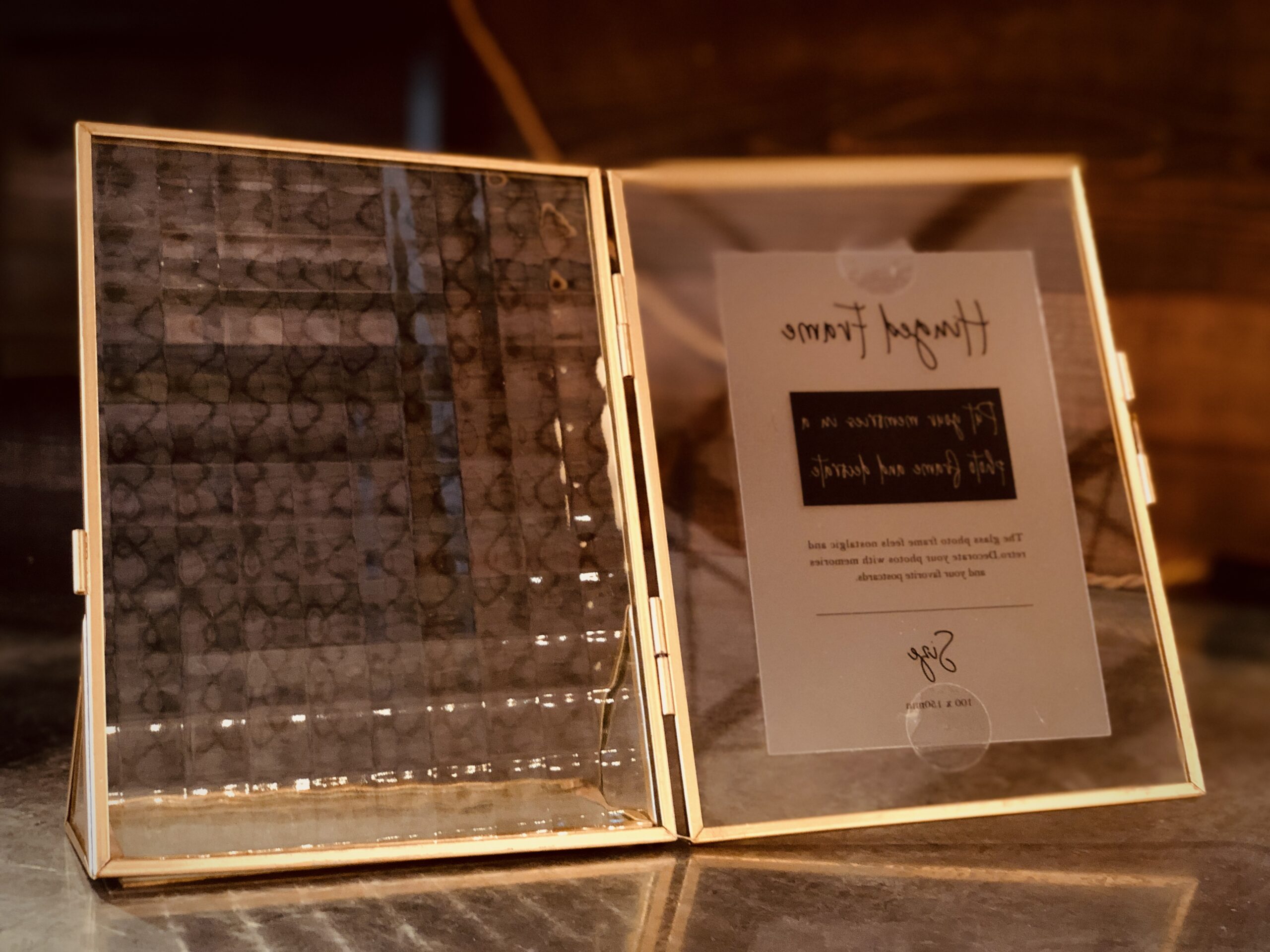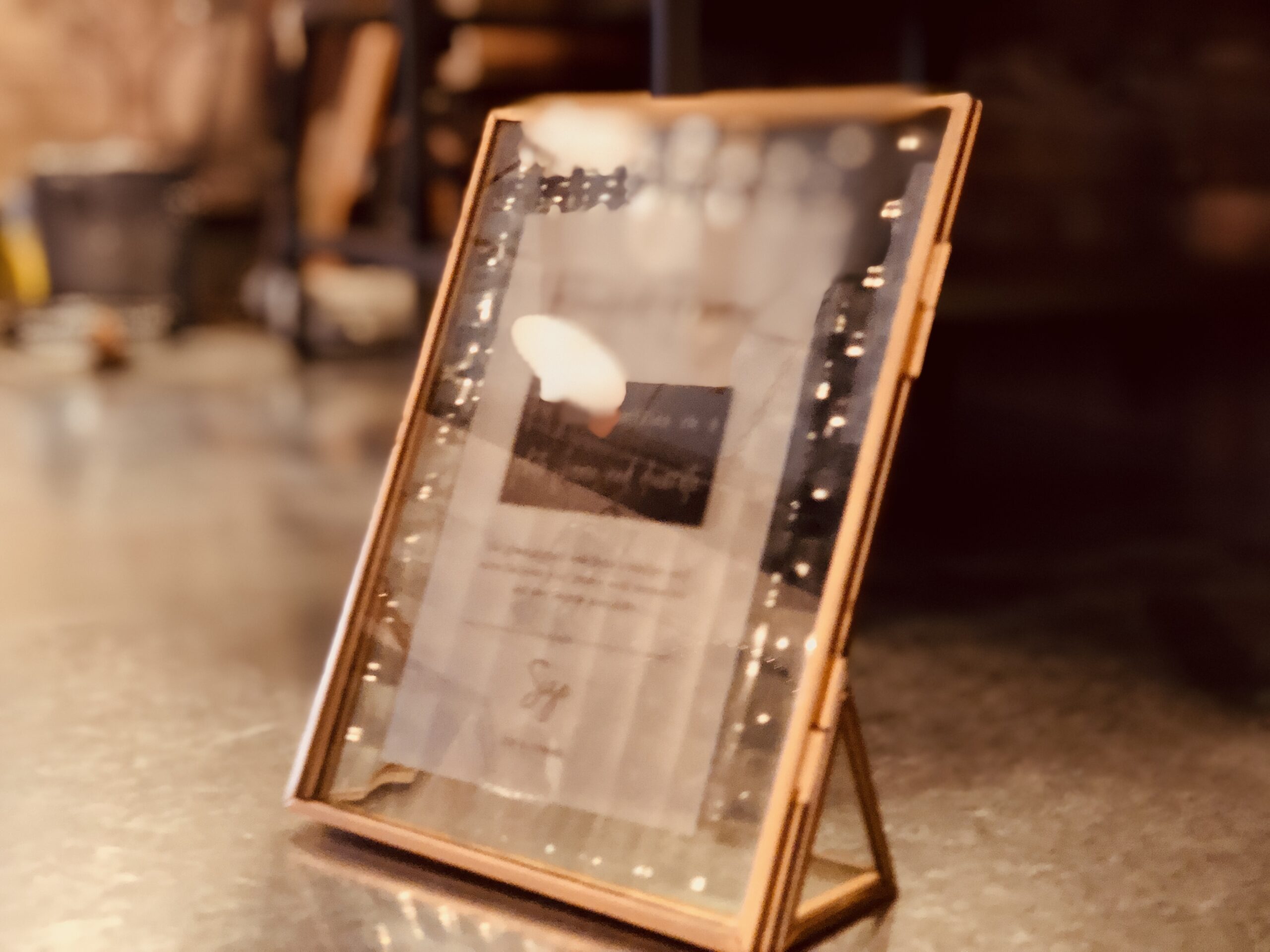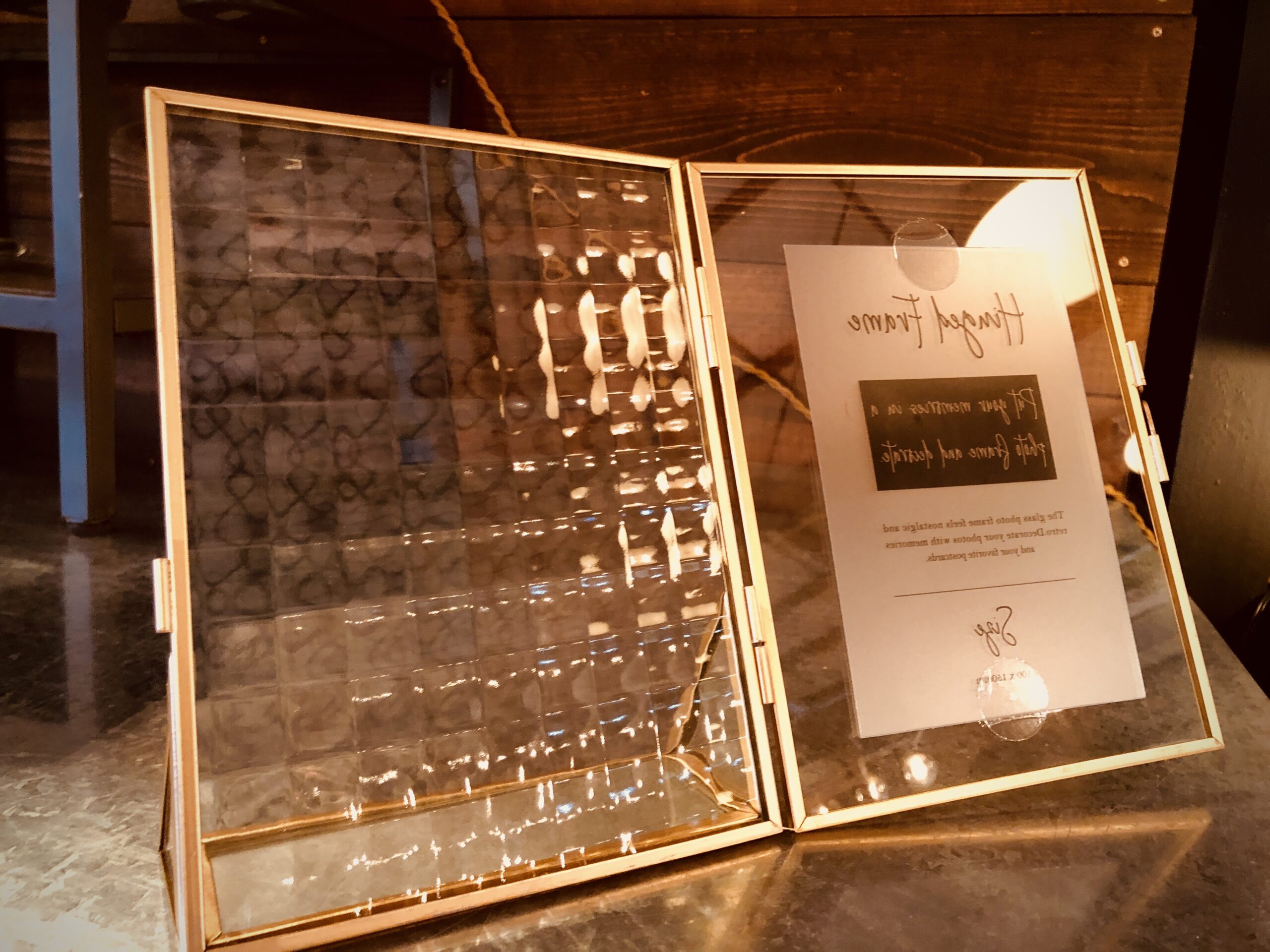 どこか懐かしいレトロなモザイクの入ったガラスのフォトフレームです。