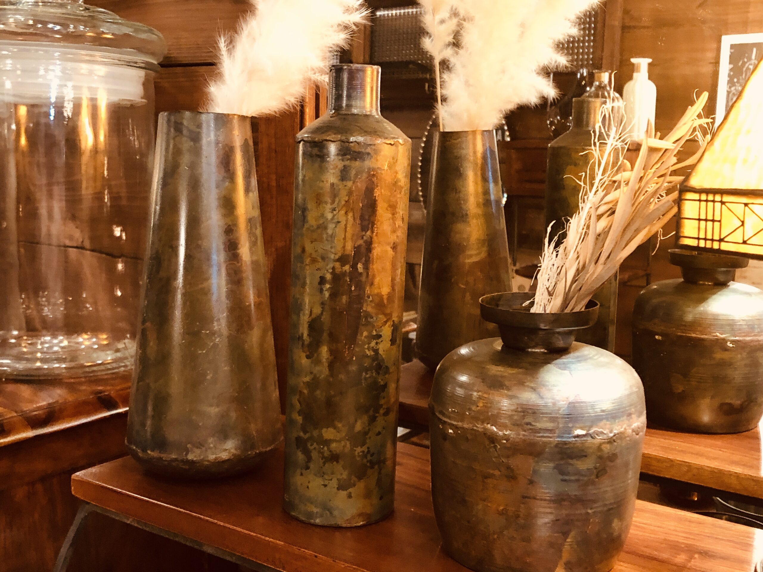 アイアンに特殊な加工を施し、古びたアンティークのように仕上げたフラワーベースです。
