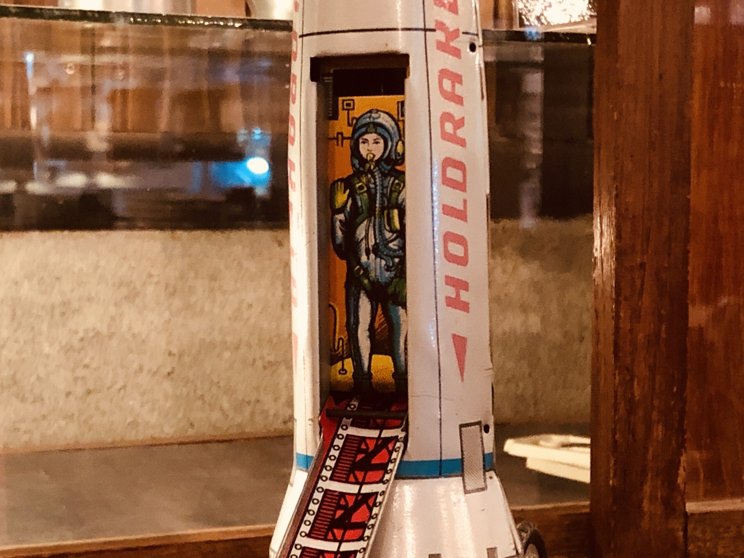 ロケットの先端を押すと、ゲートが開き宇宙飛行士が現れます。