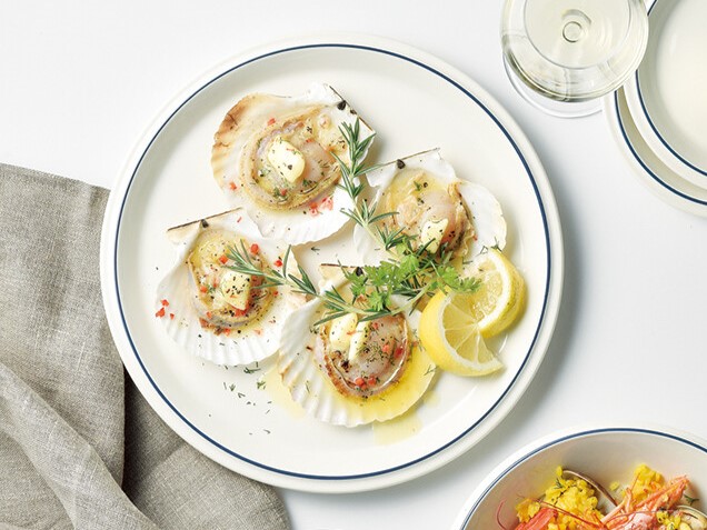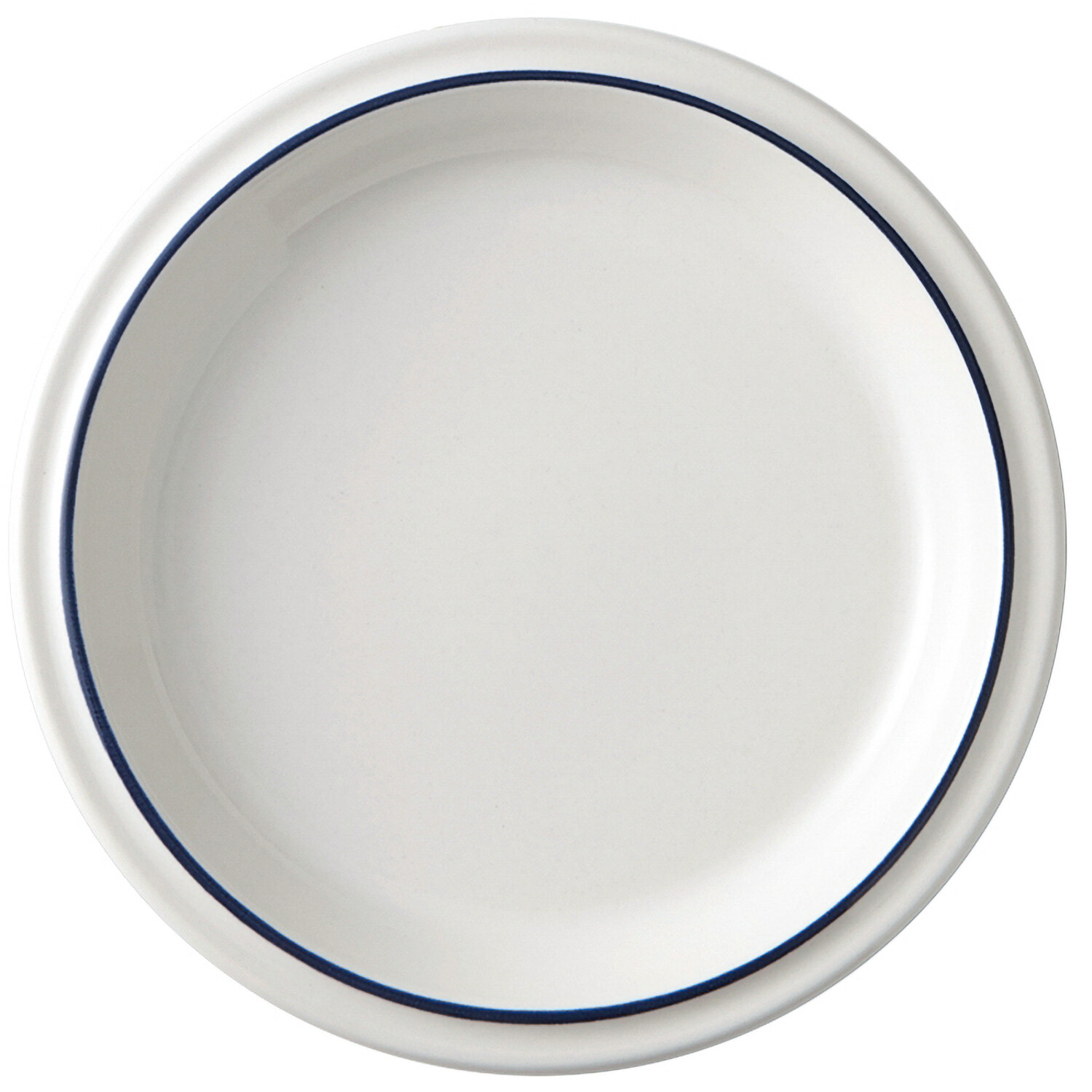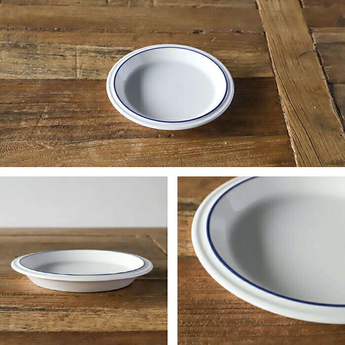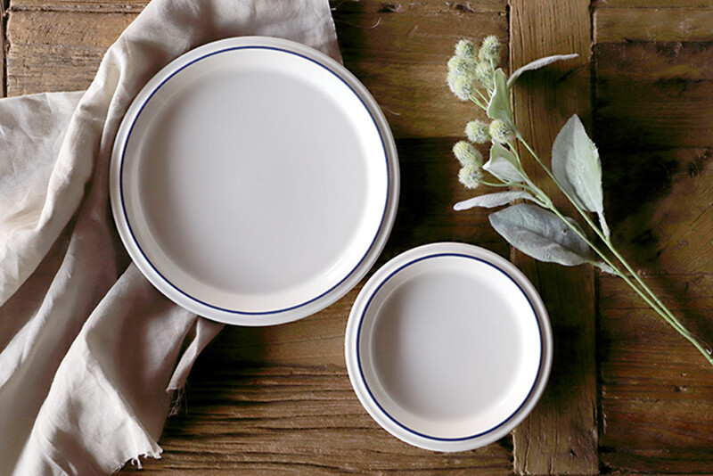真っ白なうつわにブルーのラインが際立つシンプルなデザインが印象的。