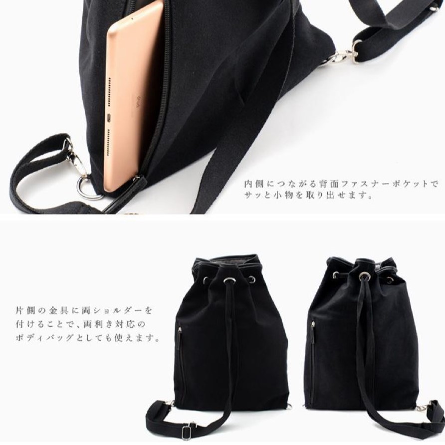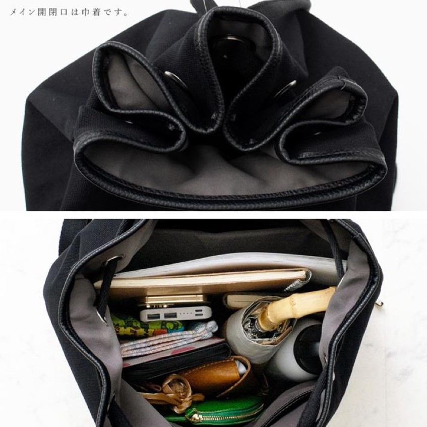 ●バッグのメイン開閉口は巾着になっております。