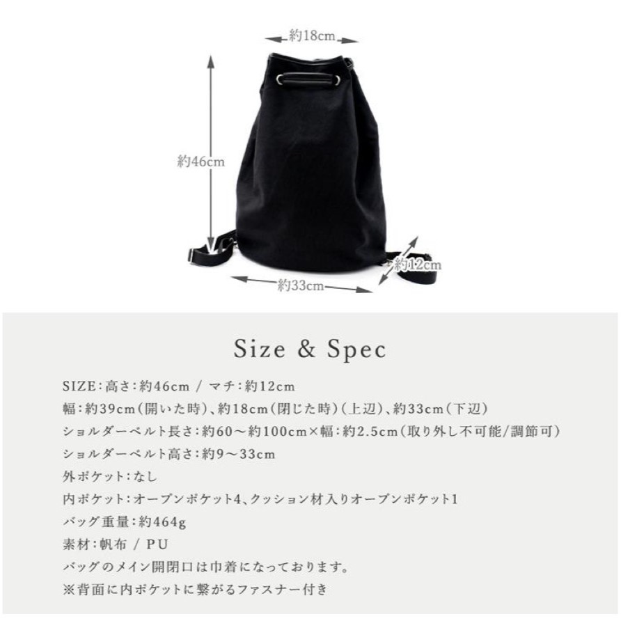 ●SIZE:高さ:約46cm / 幅:約39cm(開いた時)約18cm(閉じた時)(上辺)約33cm(下辺) / マチ:約12cm