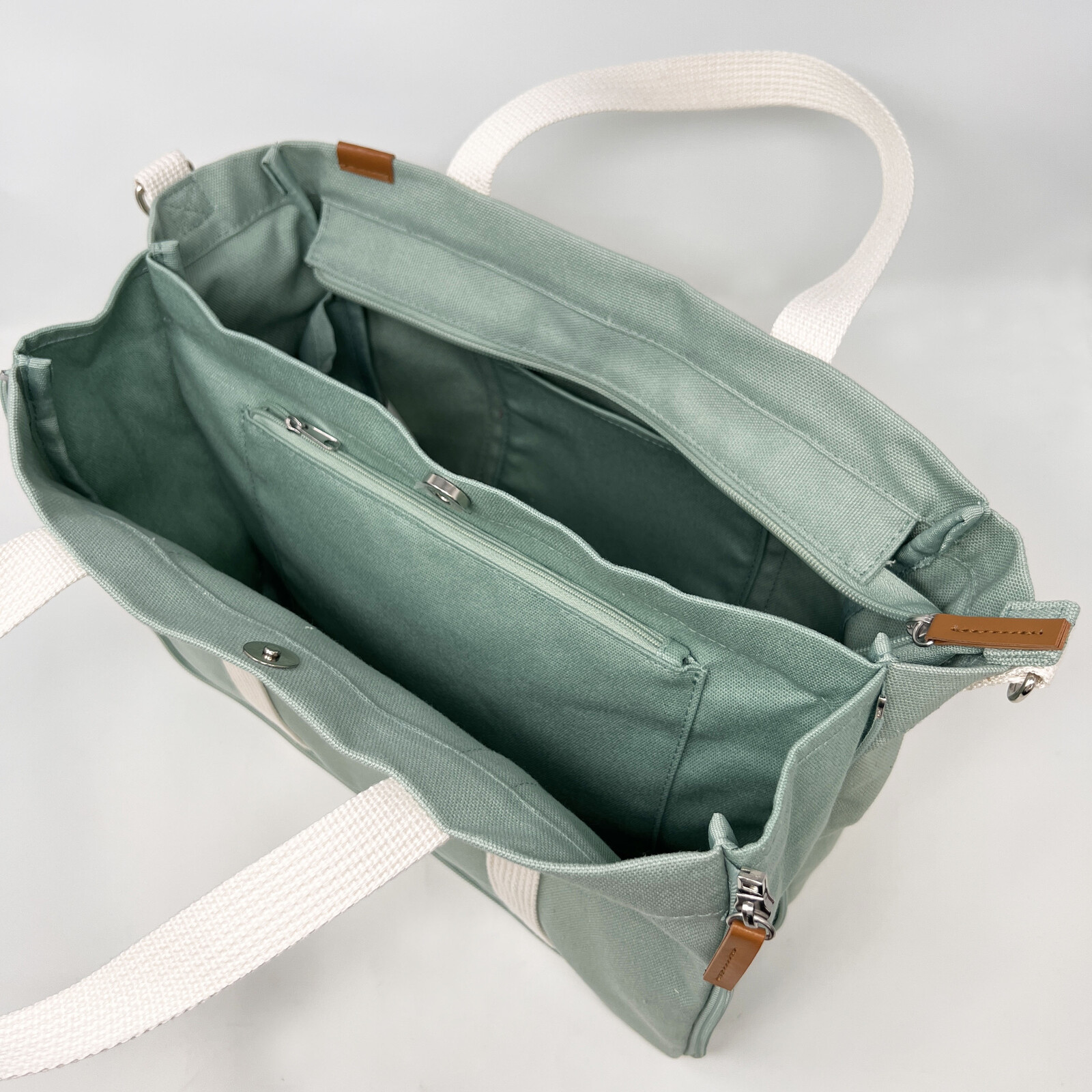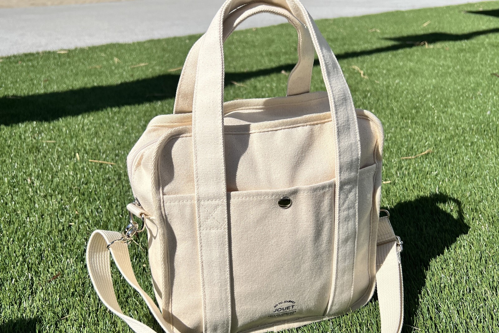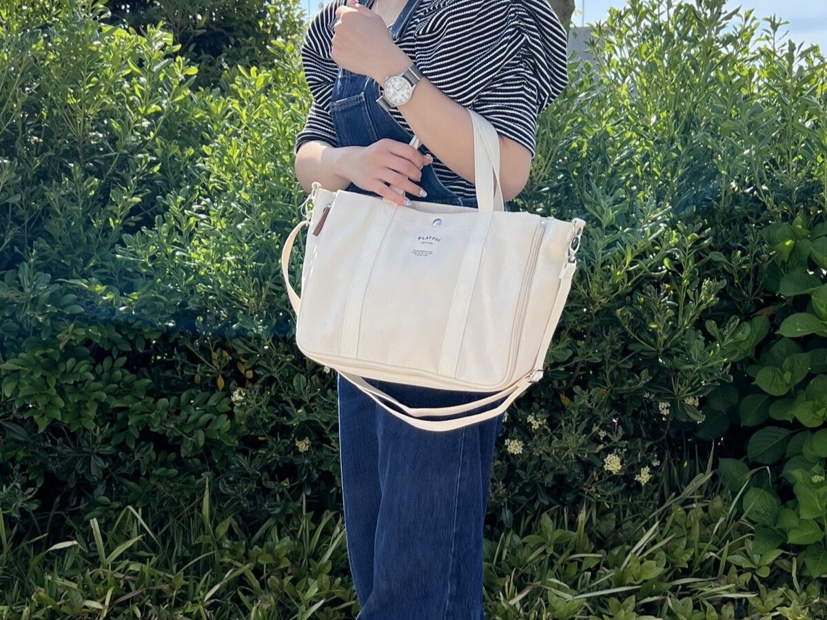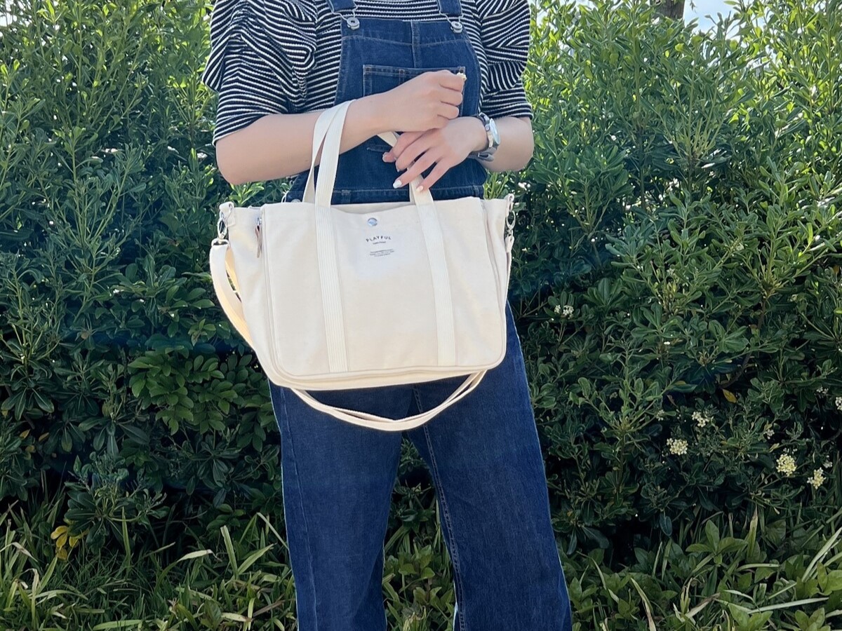 側面のファスナーを広げると、マチが広がるので 容量が増やせます♡