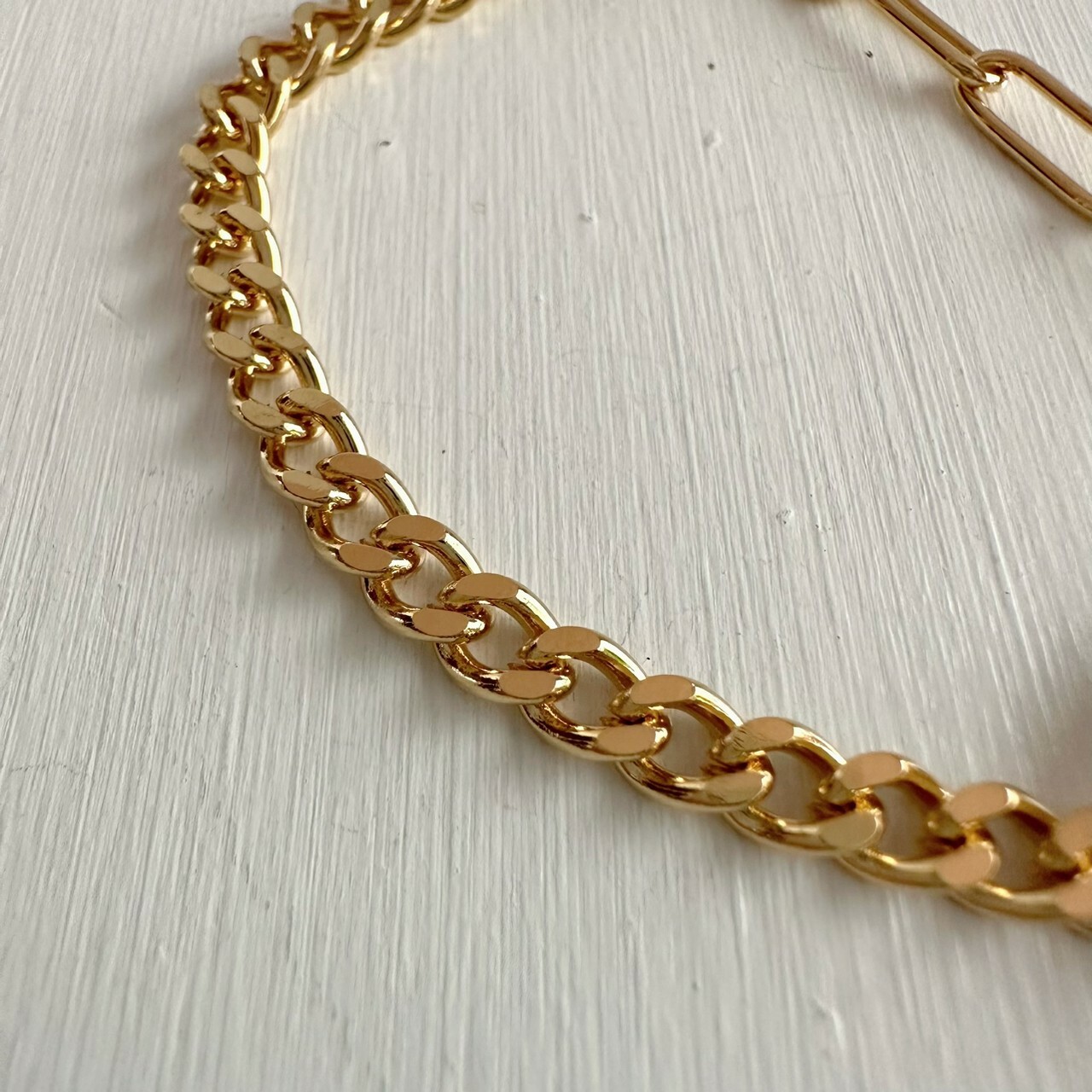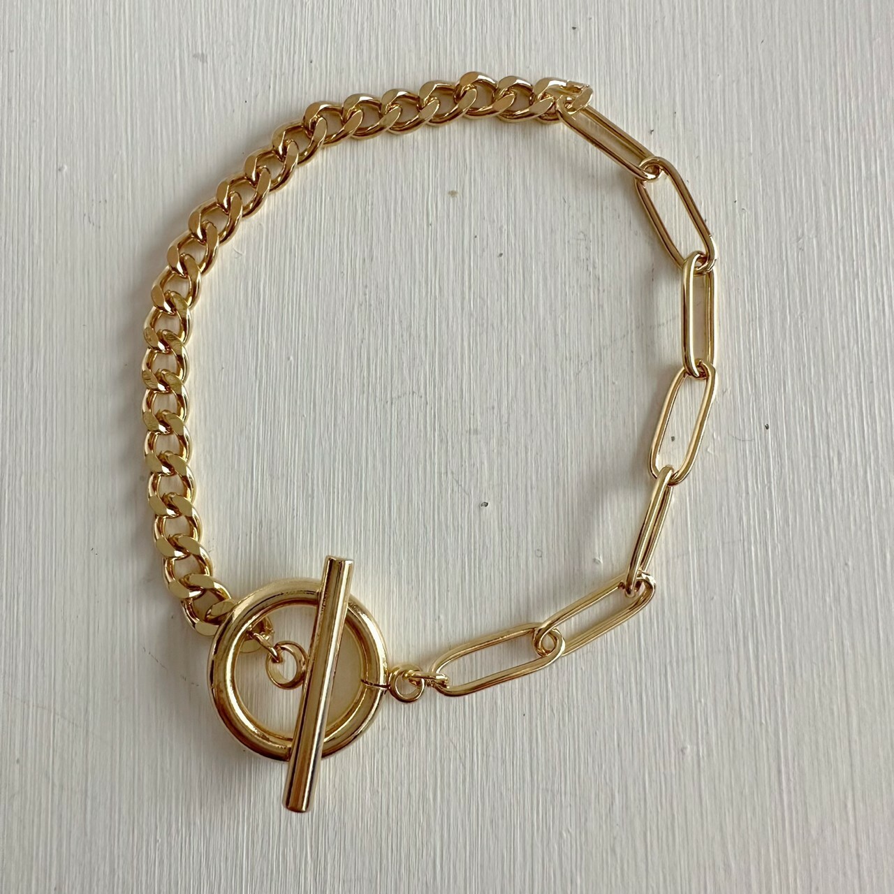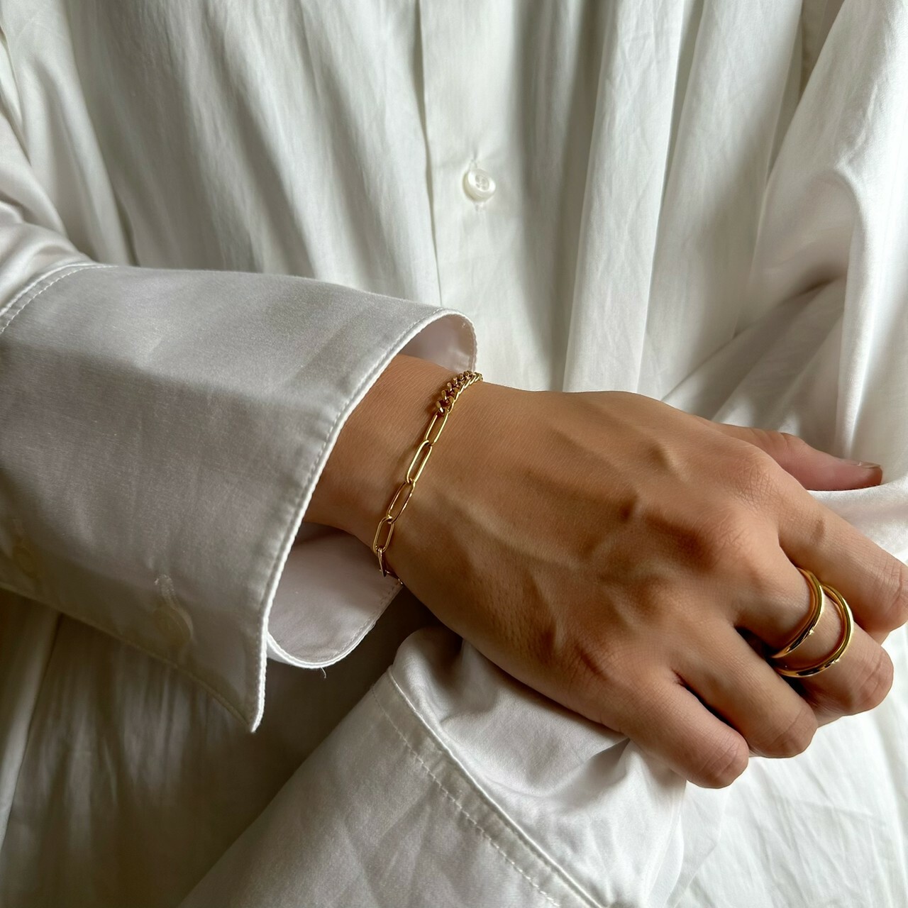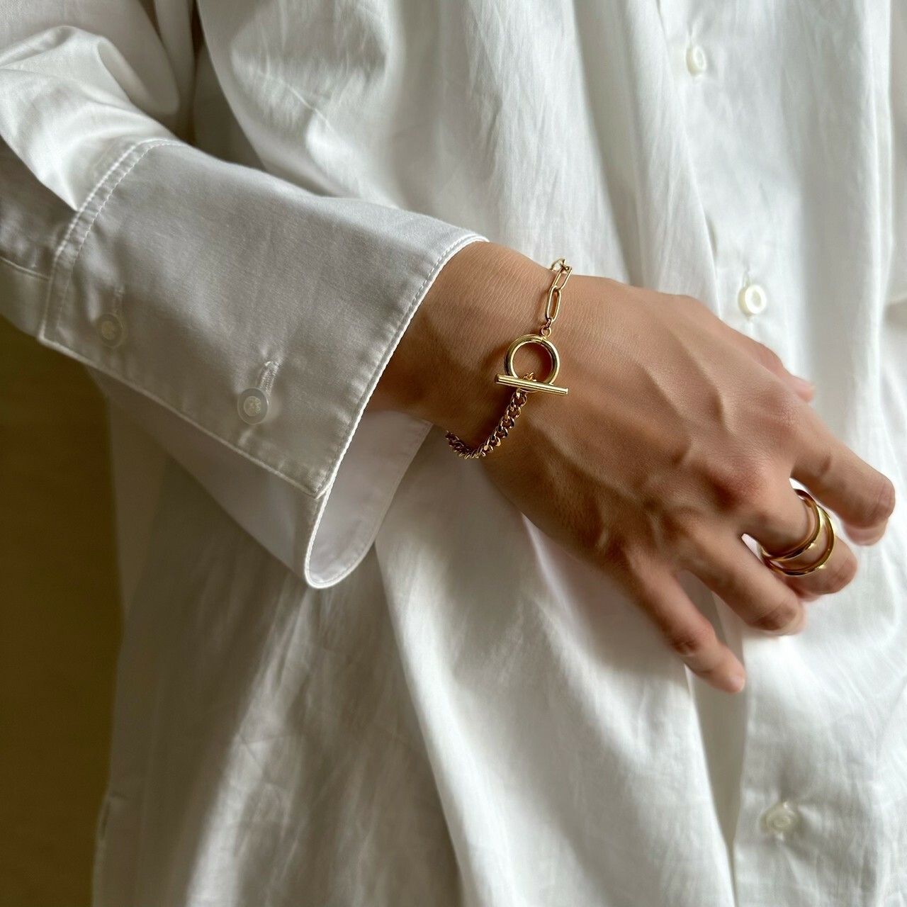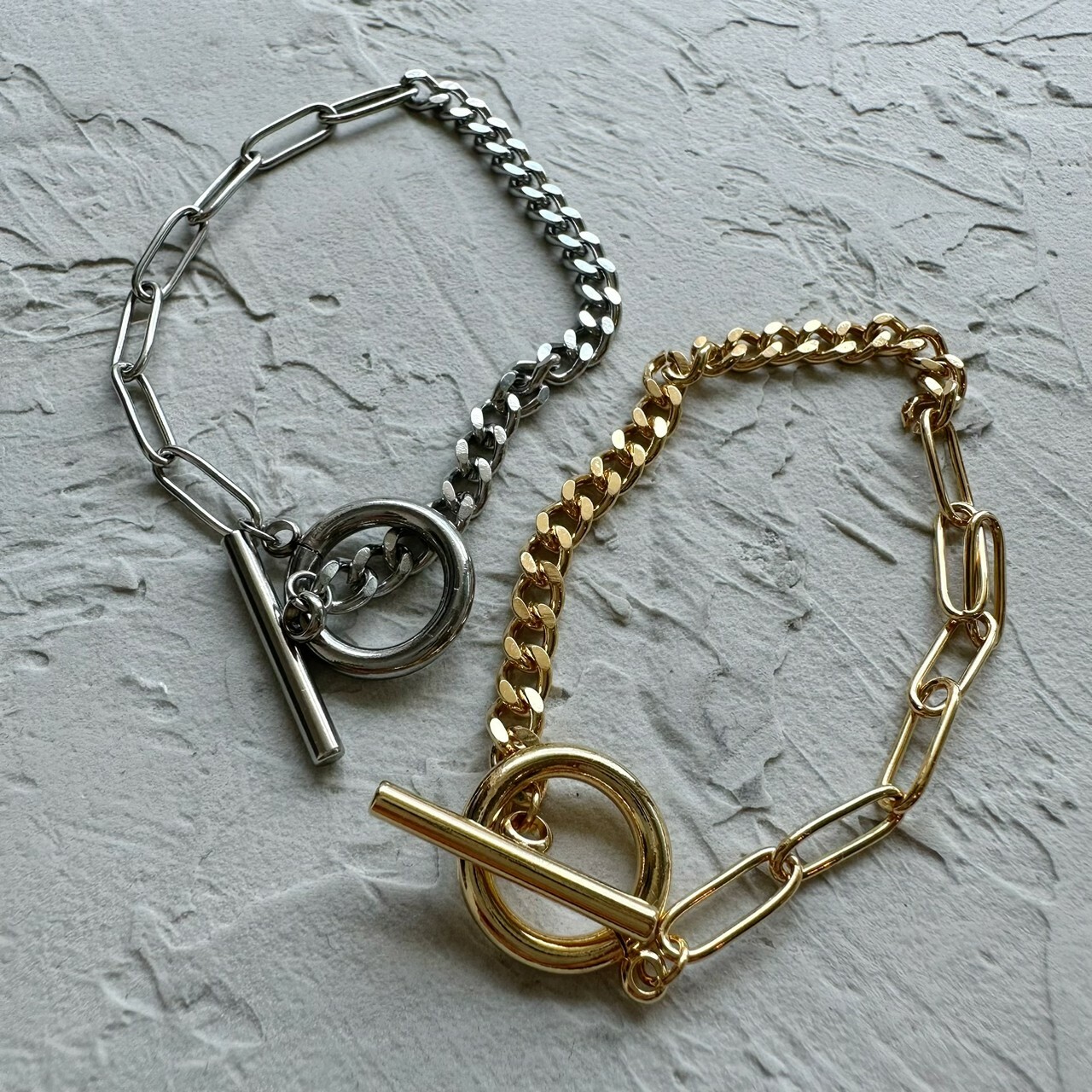 アシンメトリーに組み合わせたチェーンが、遊び心溢れるマンテルブレスレット