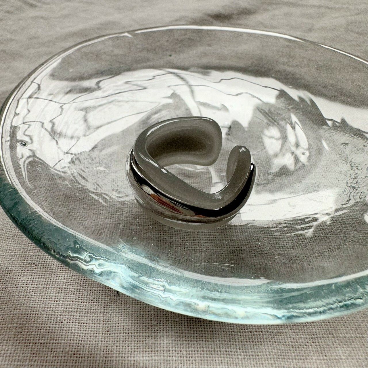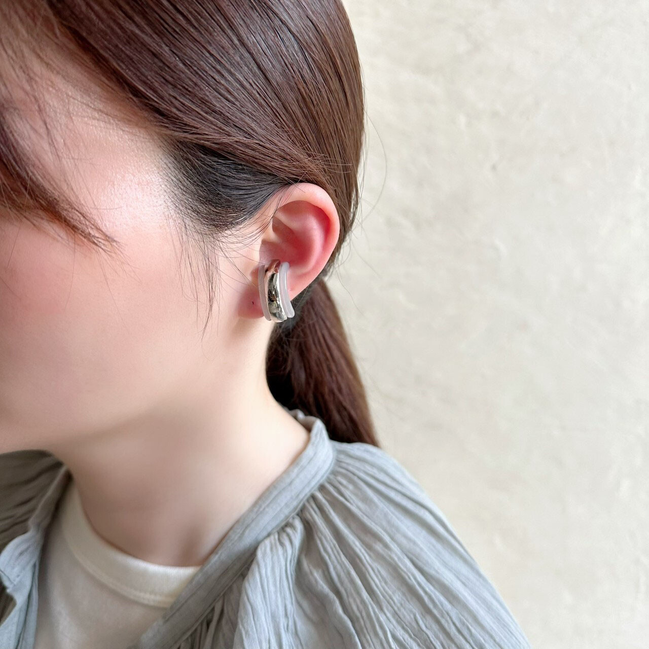 エッジの効いたフォルムが映えるマーブル樹脂イヤーカフ&リング