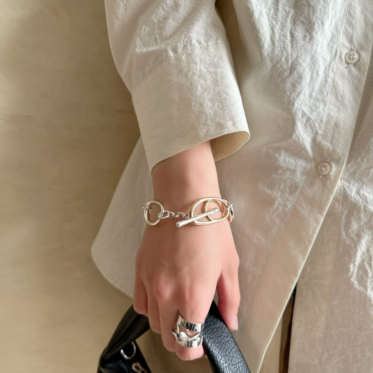 大きめのチェーンパーツがエッジを効かすミックスカラーブレスレット