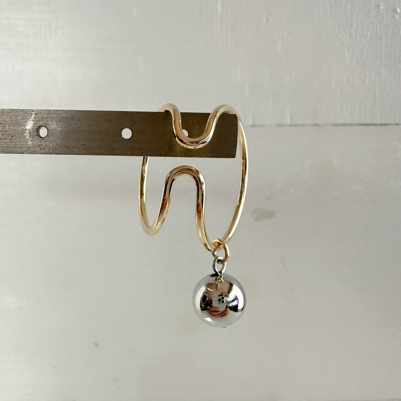 トップにあしらったボールが動くたびに揺れ、視線を惹きつけるデザイン。
