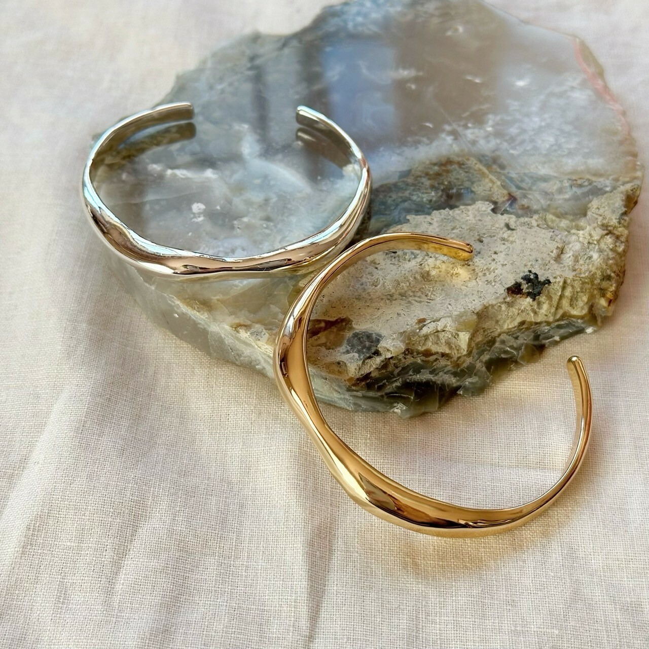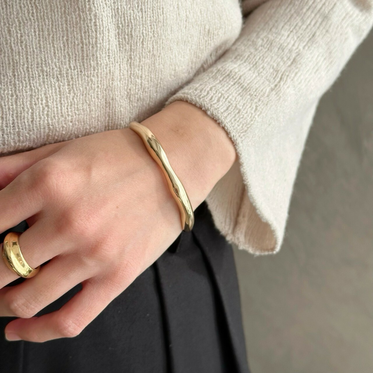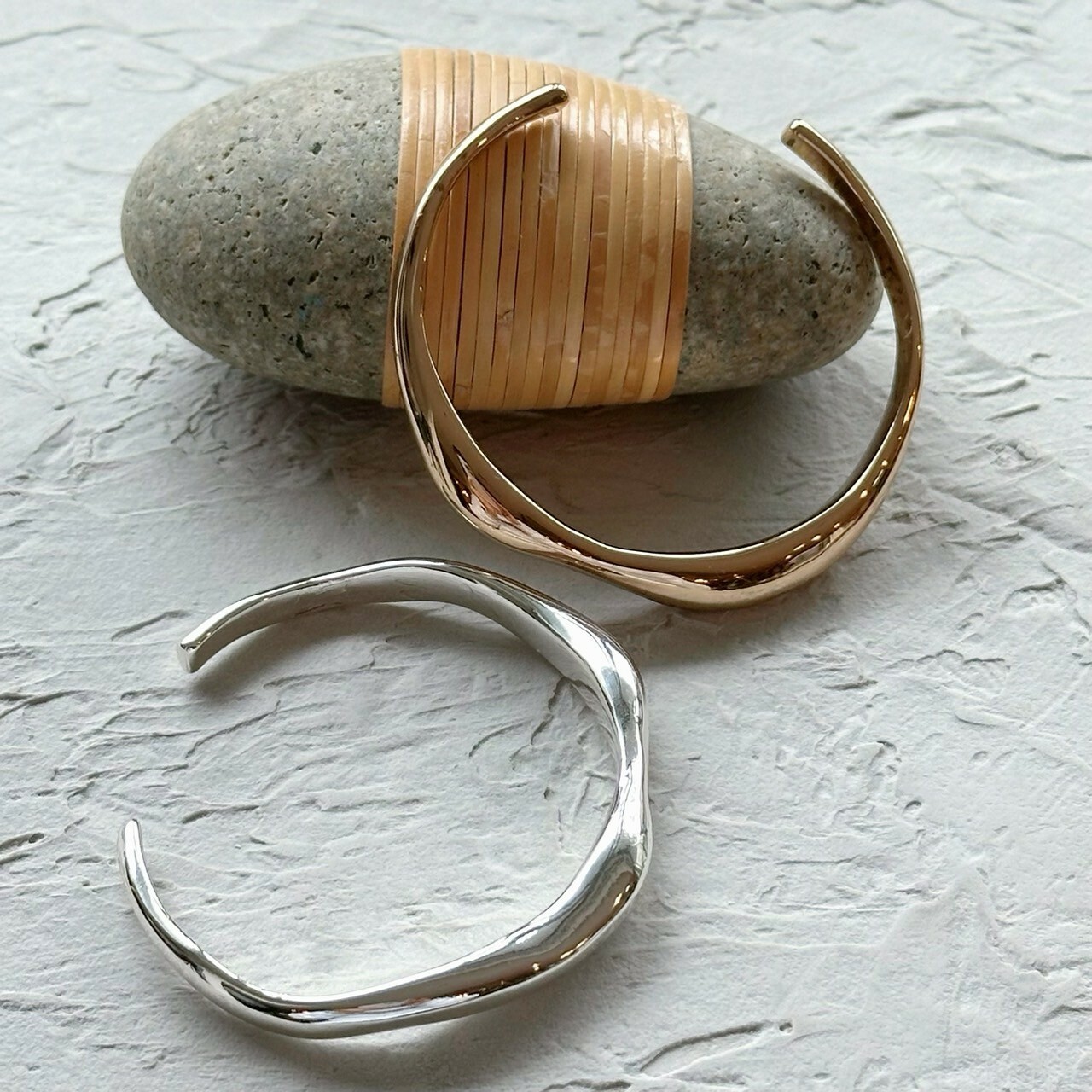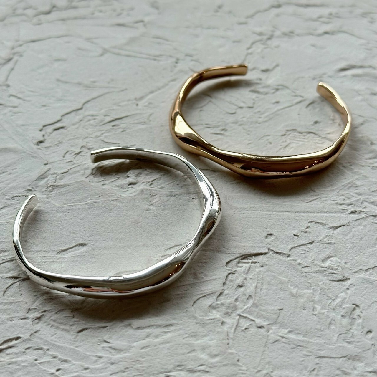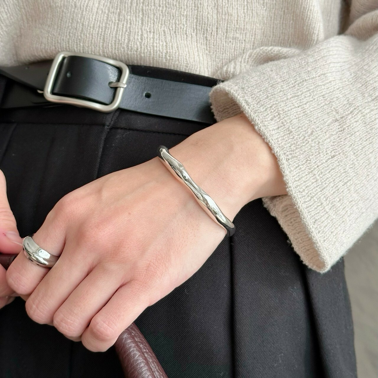 不規則にカーブしたフォルムが特徴的なメタルバングル