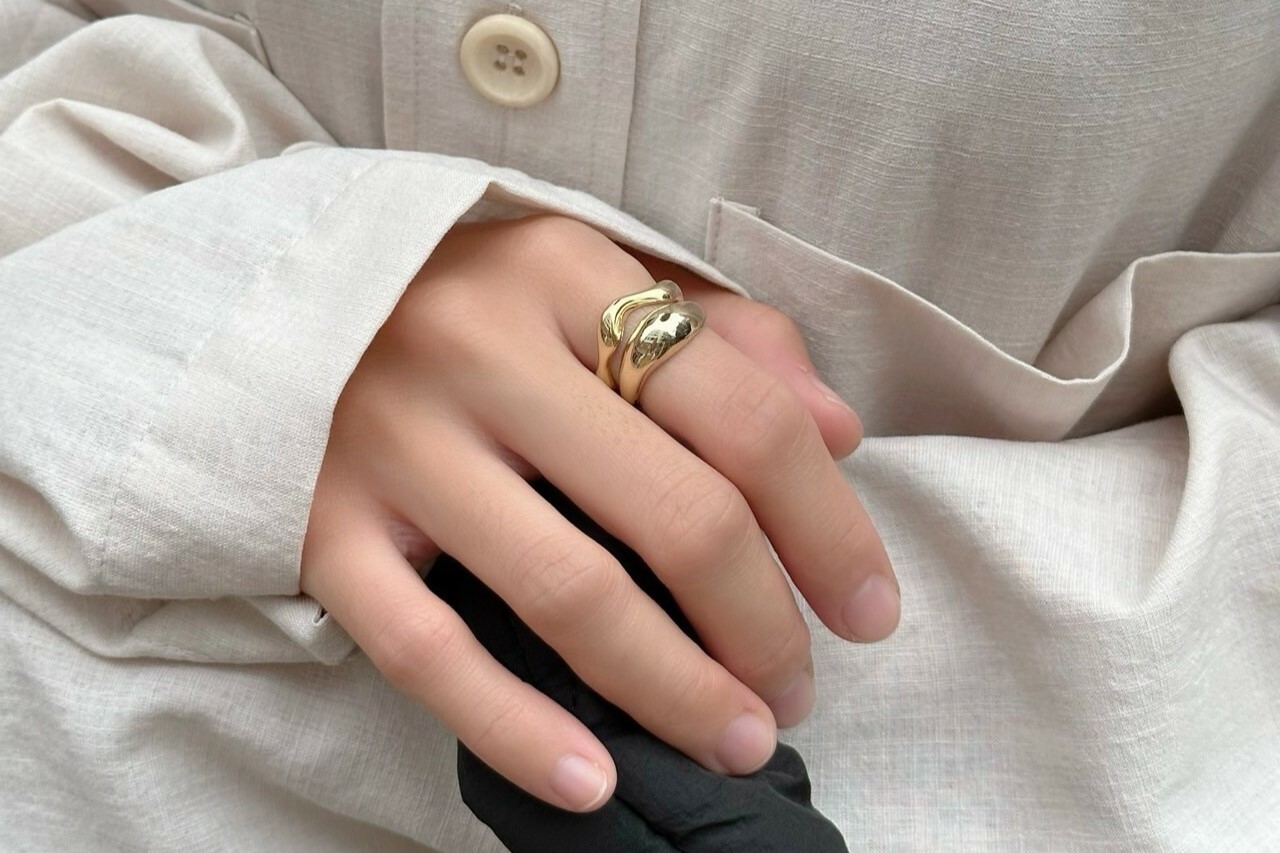 指に沿う滑らか曲線を描いた大ぶりフォルム。