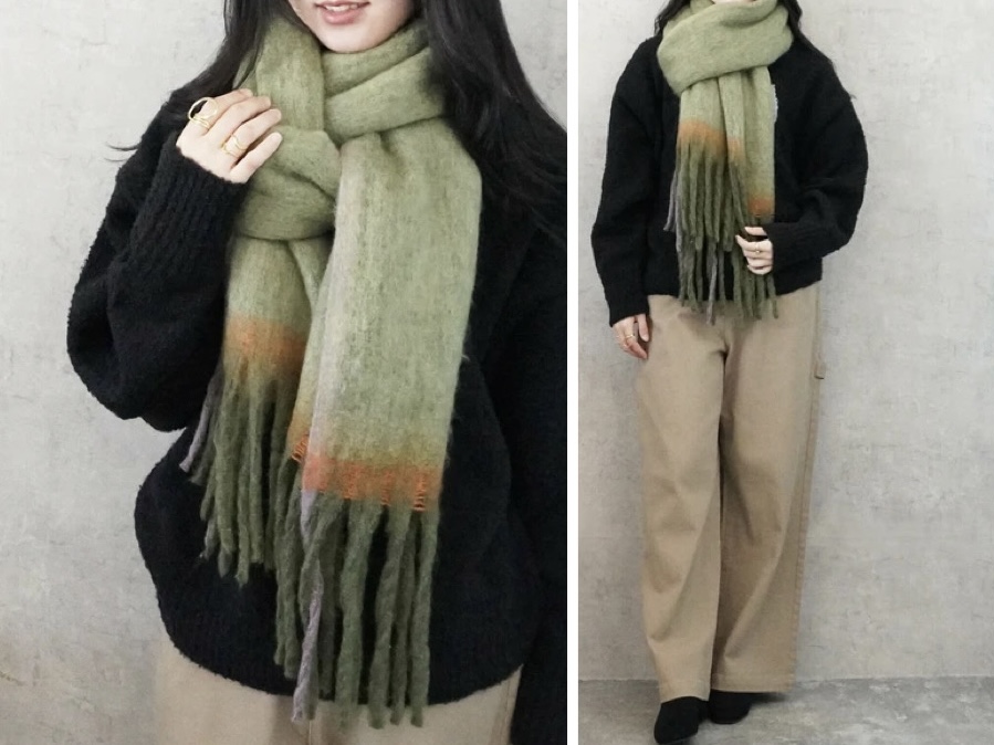 デイリー使いはもちろん、通勤やお出かけスタイルにも活躍する万能マフラー。