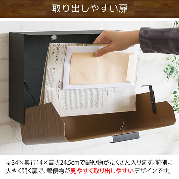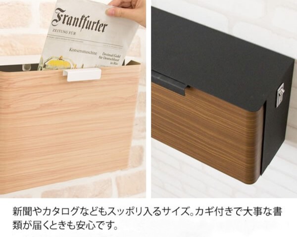 キレイな木目転写スチールのスタイリッシュなデザインが特徴の壁掛け式メールボックス。