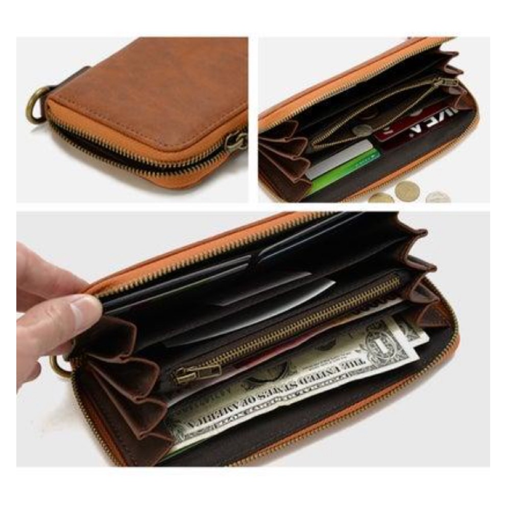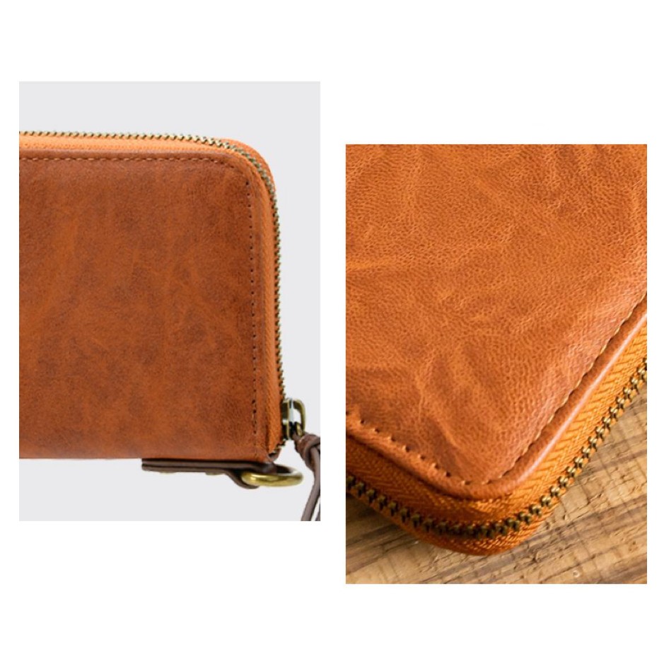 シワ感のあるオシャレなPUレザーを使用した、シンプルなラウンドジップ式の長財布。