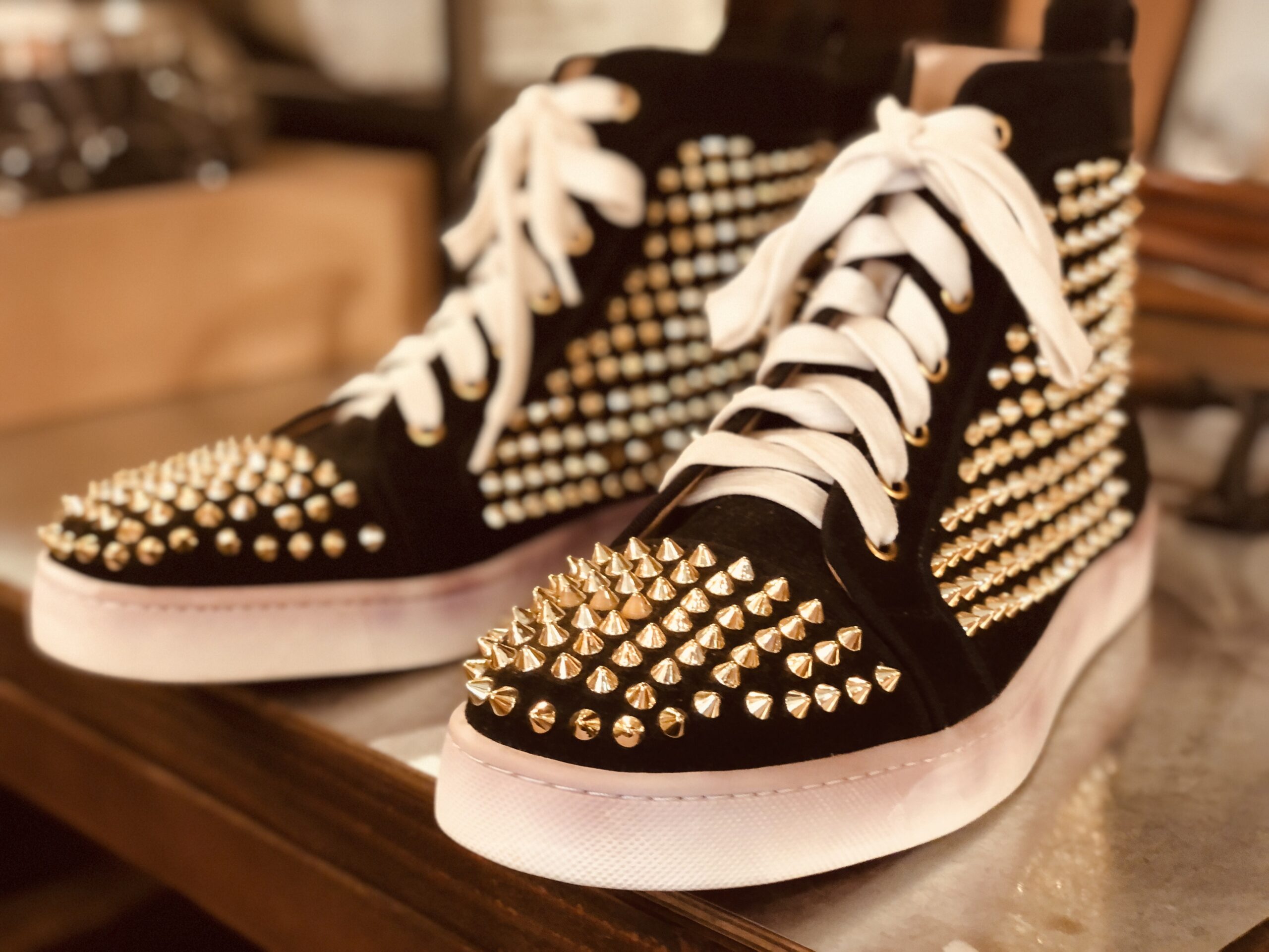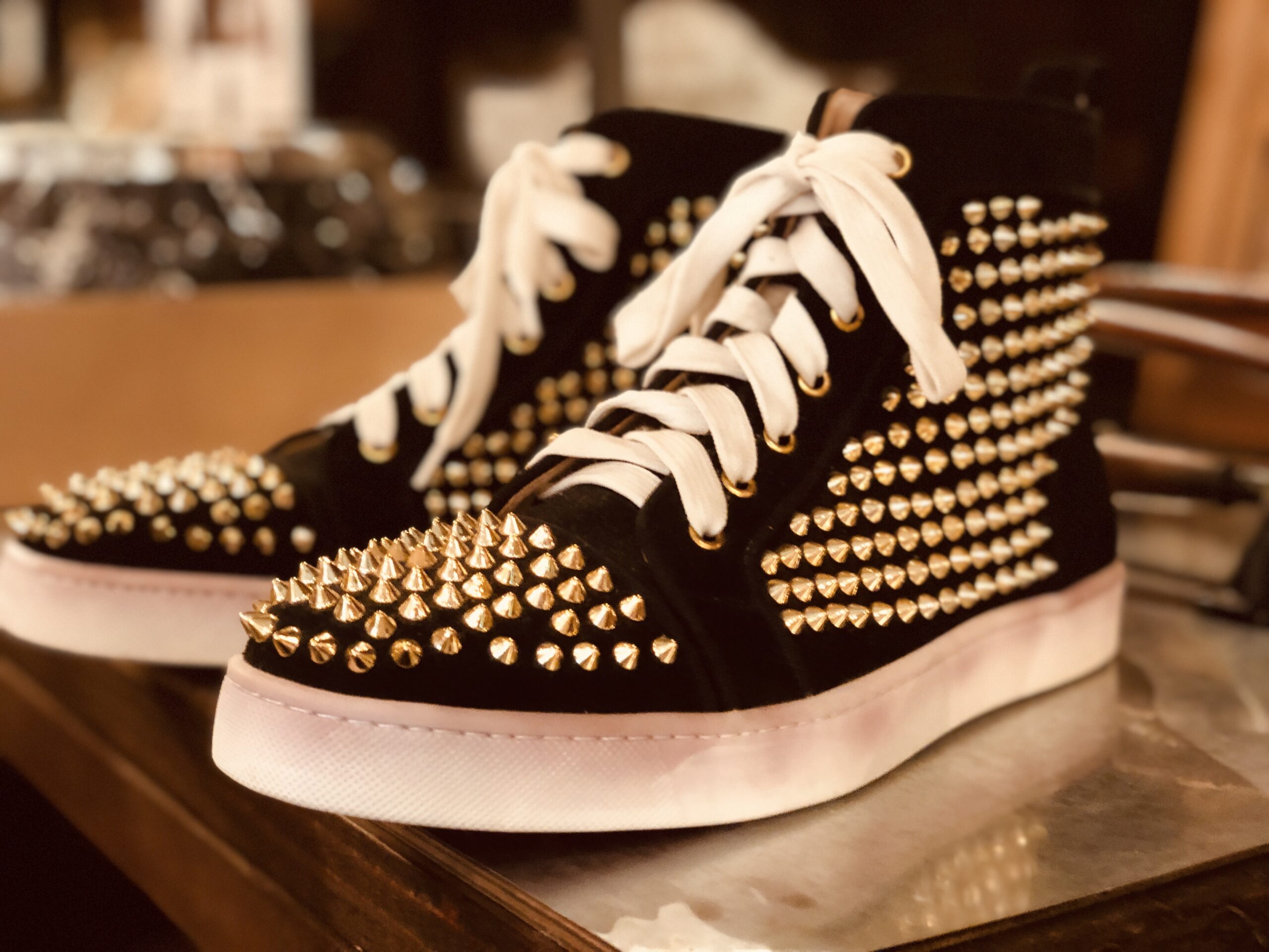 スエード調のスニーカーに、大量のリベットをつけた一癖あるアイテム!