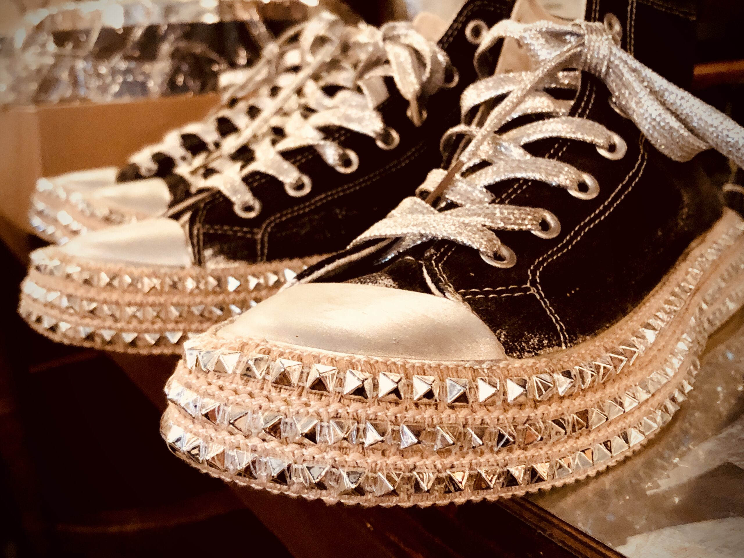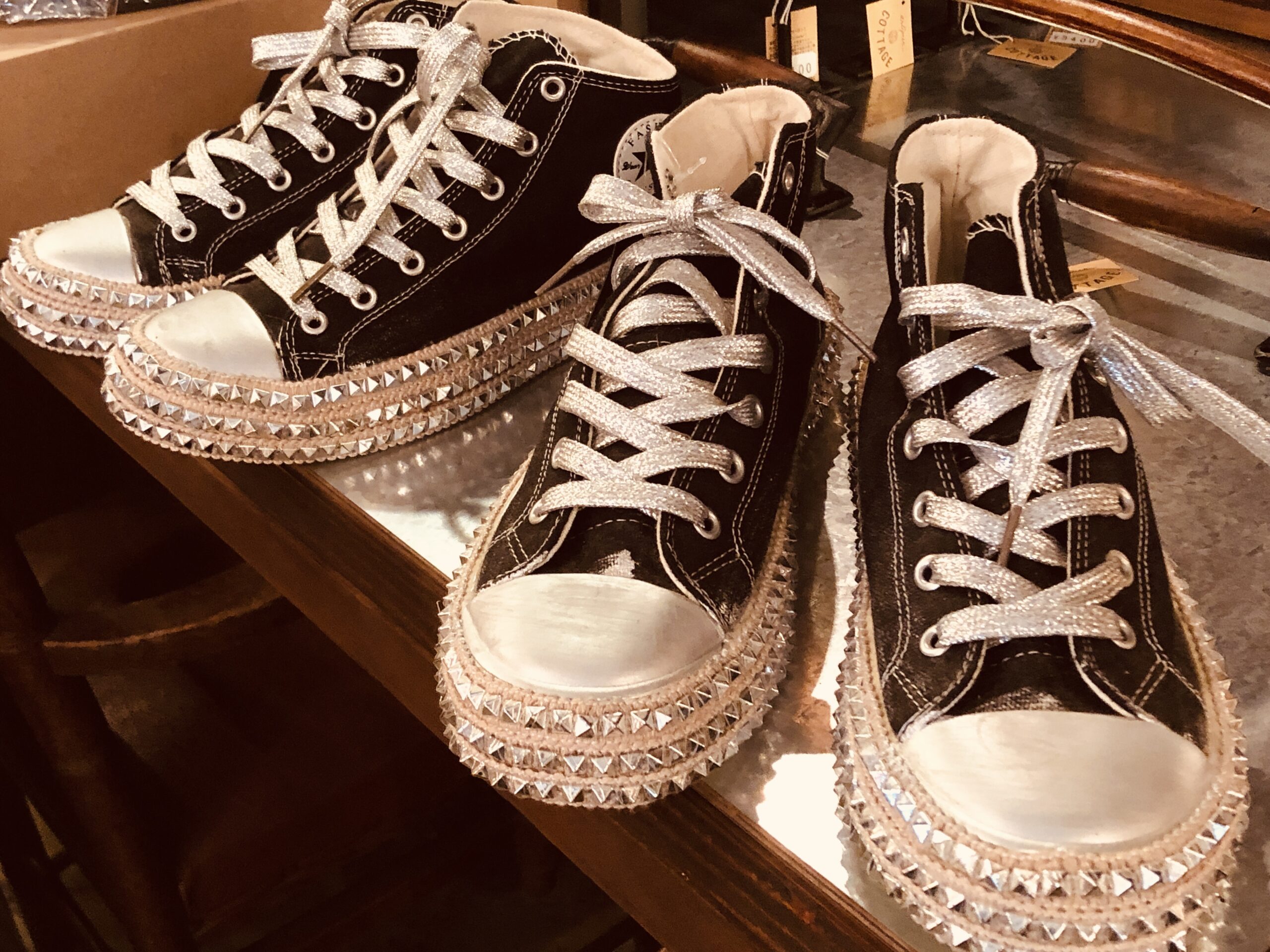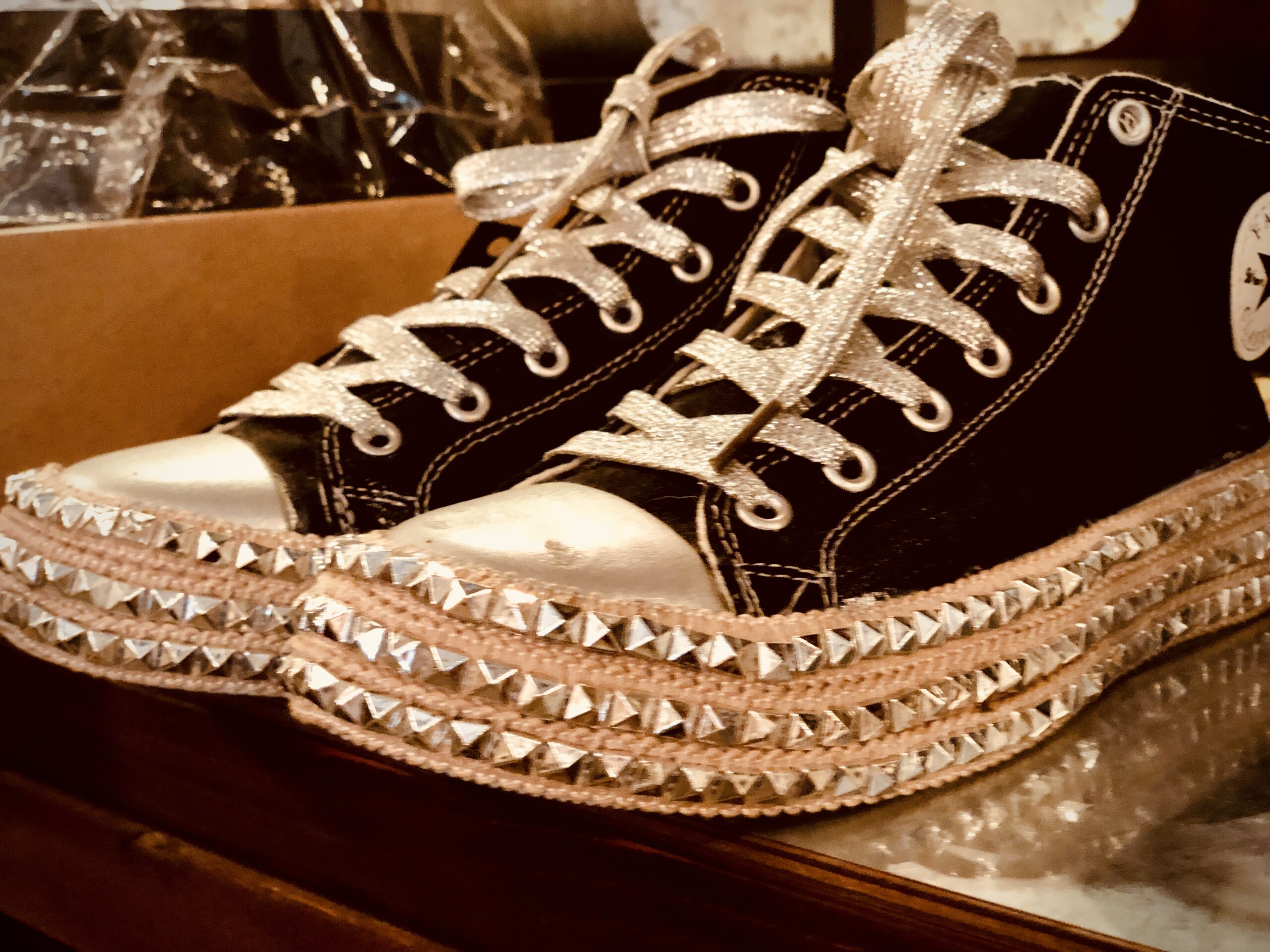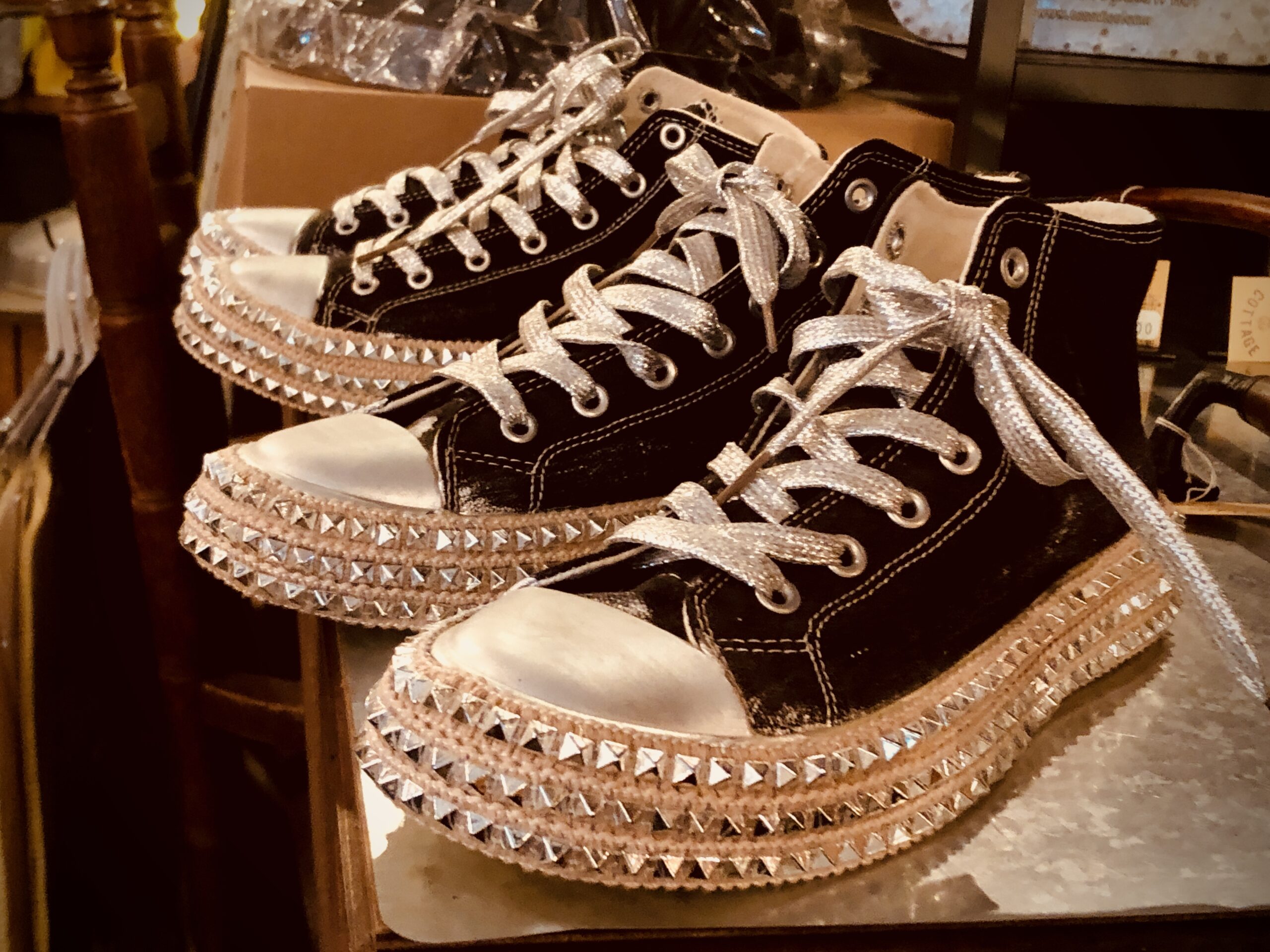 キャンバススニーカーに、大量のリベットをつけてリメイク!