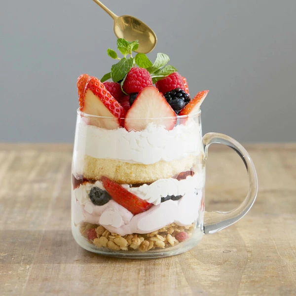 パフェのフルーツやクリームが層になっている様子が見えるのも、ガラス製品ならではの楽しみです。