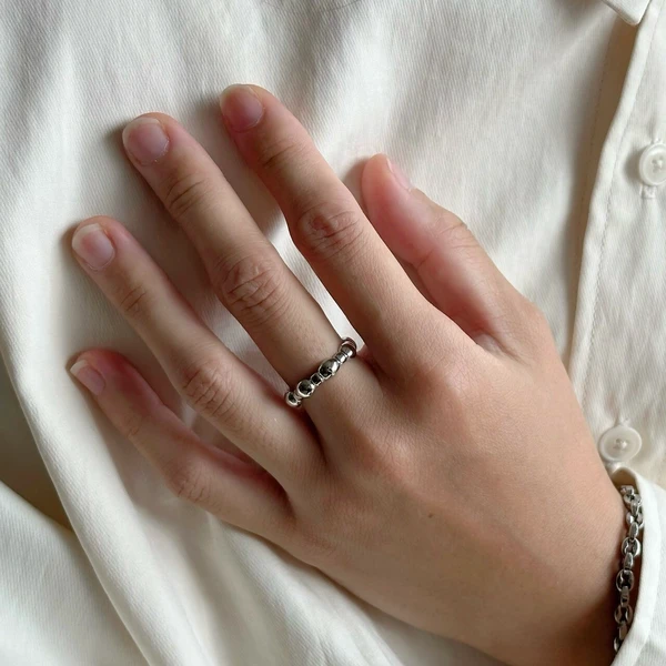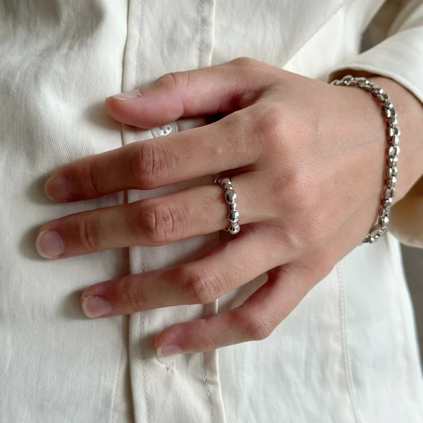 ボコボコした表面のシングルメタルリング。