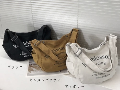 普段使用にもってこいのシンプルロゴキャンバスショルダーバッグ。