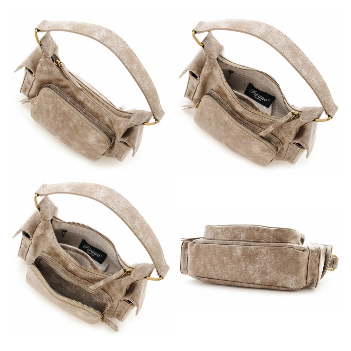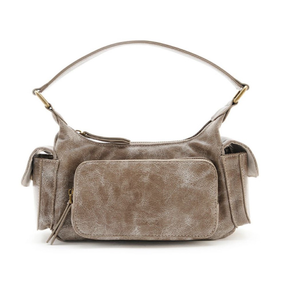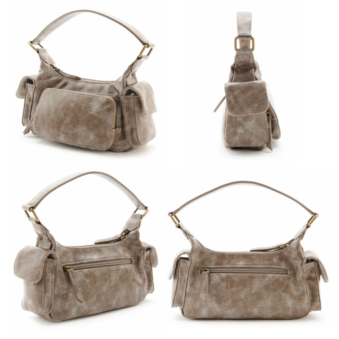 ダメージ加工風のデザインがカジュアルに使いやすいハンドバッグ。