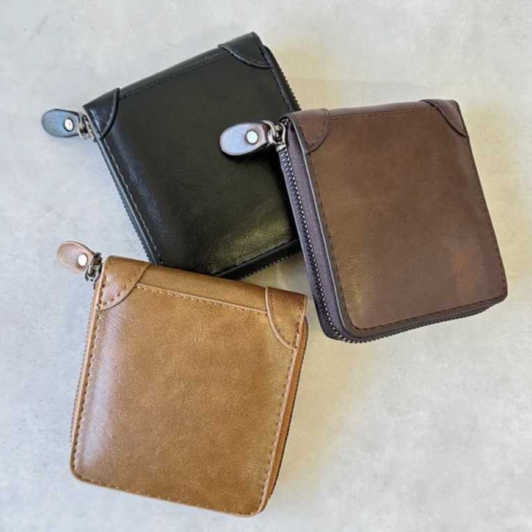 ムラとシワが雰囲気のあるフェイクレザー。シンプルで風合いのある仕上がりの財布です。