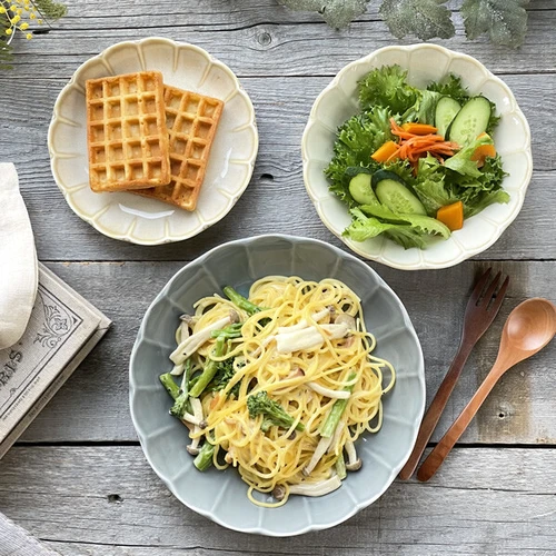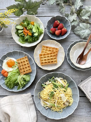 盛り付けるだけで、グッとお料理を引き立てる花型のうつわです。