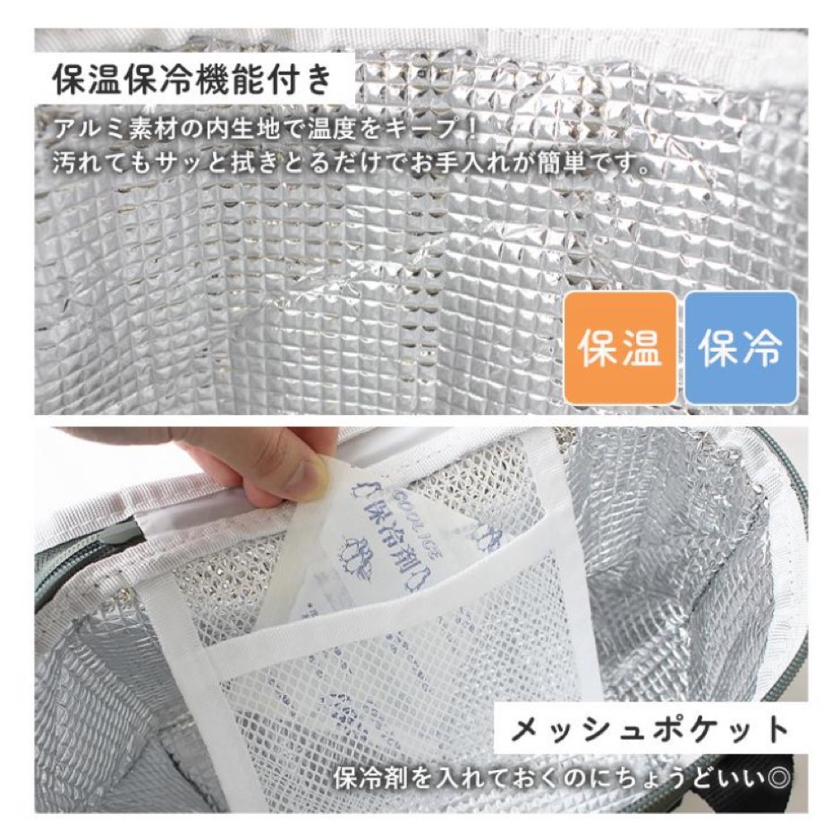アルミ素材の保温保冷機能付き内生地で温度をキープ!