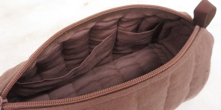 ぽこぽことしたシルエットがかわいい柔らかなキルトポーチ。