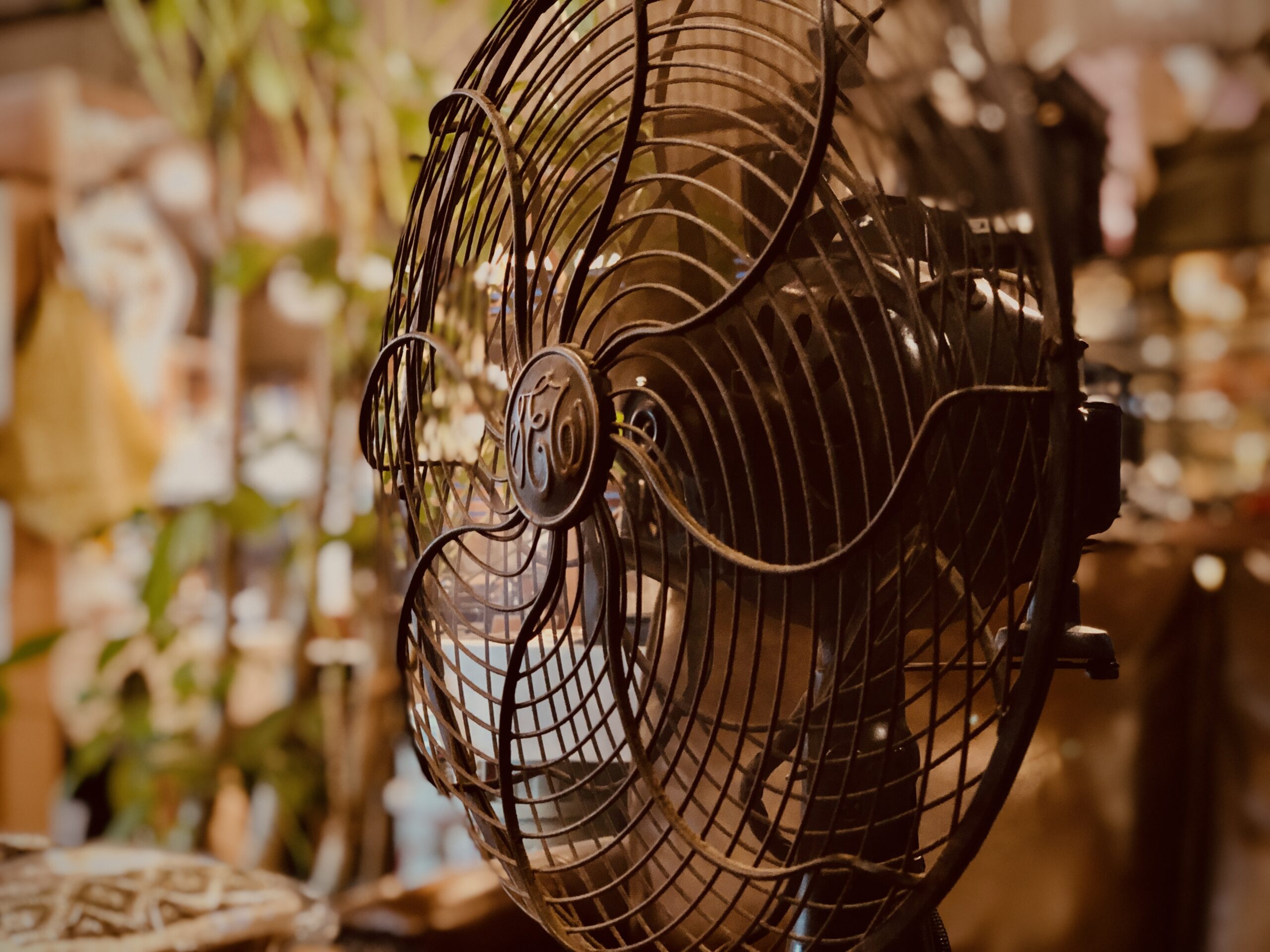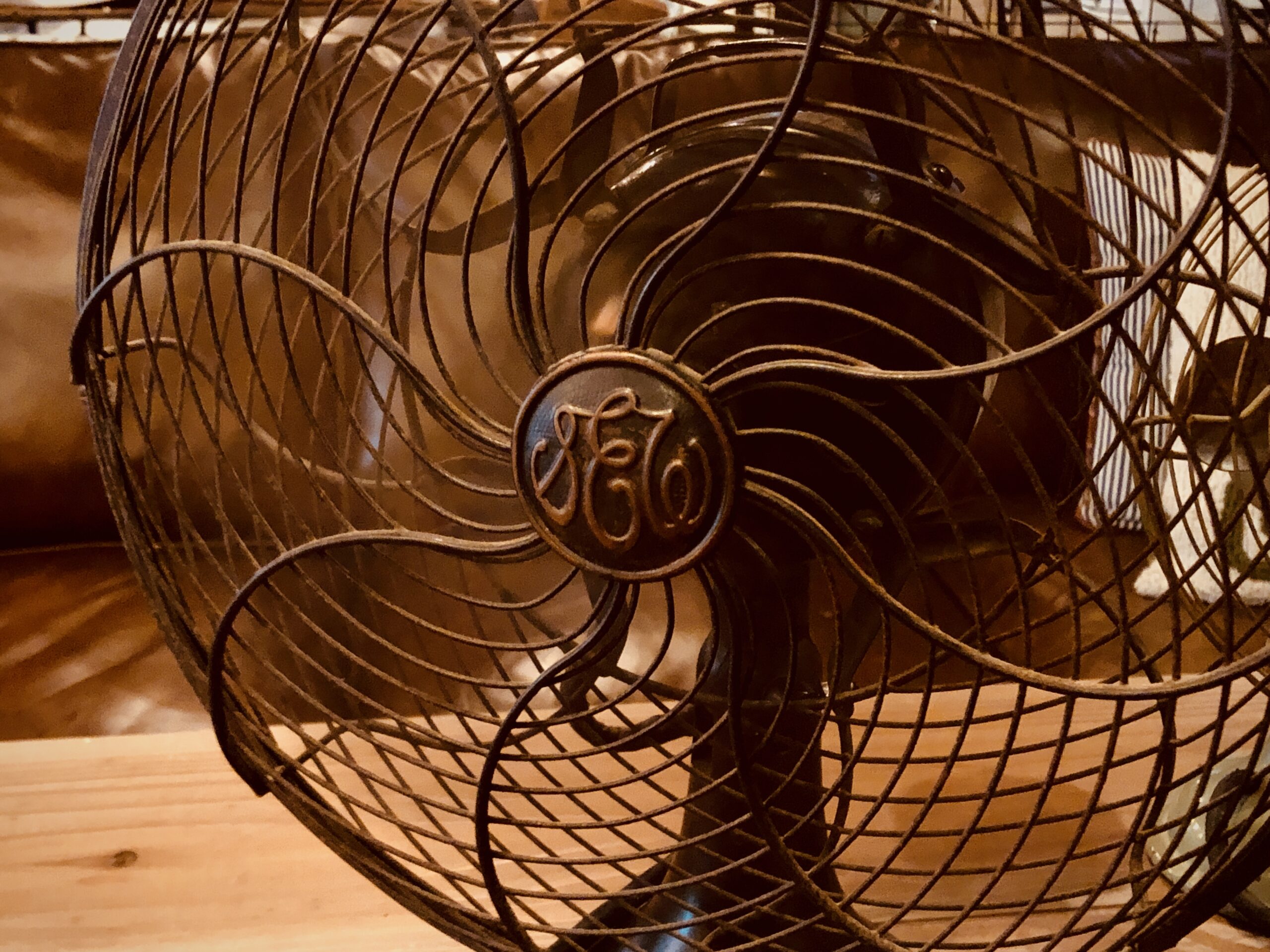 古い海外製の扇風機は、小さいながらも迫力があります。