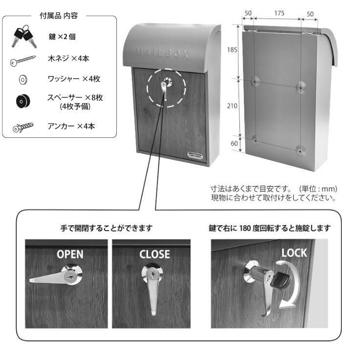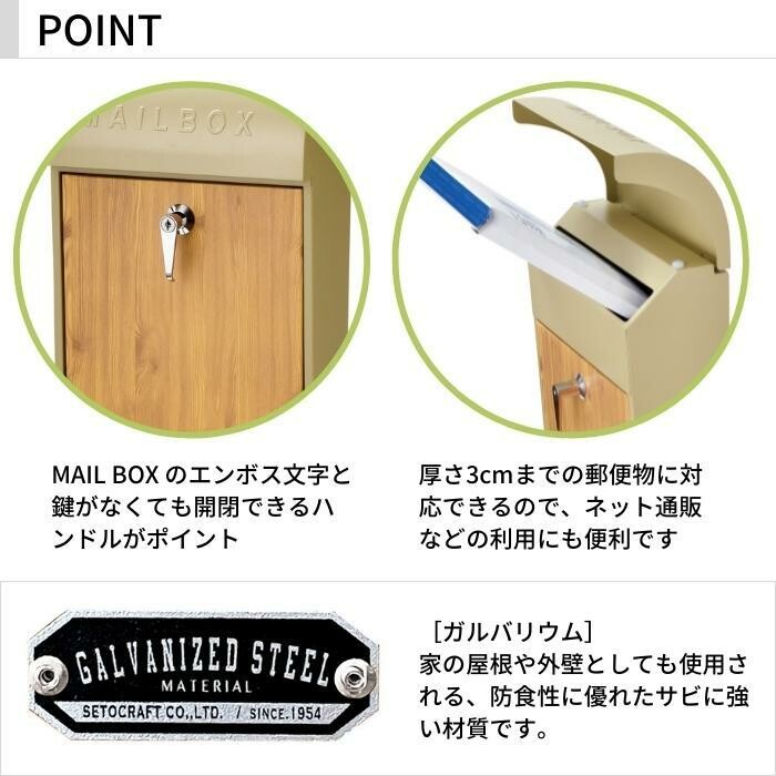 厚さ3cmまでの郵便物に対応できる壁掛けポストです。