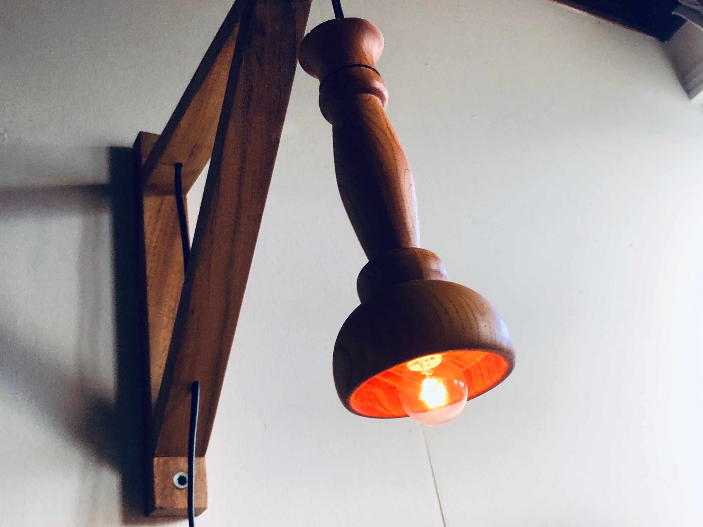木目と丸っこいフォルムがやわらかく、雰囲気のあるライトに仕上がりました♪