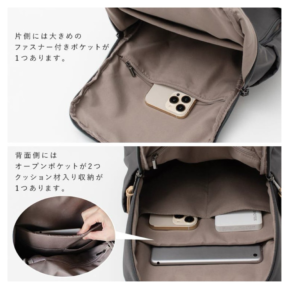 充実したポケットのデイリーリュックです。