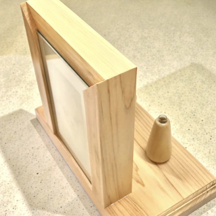 写真立ては、スリガラスと透明なガラスの2枚で