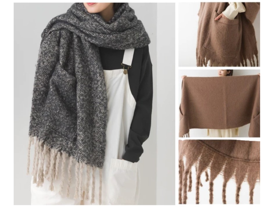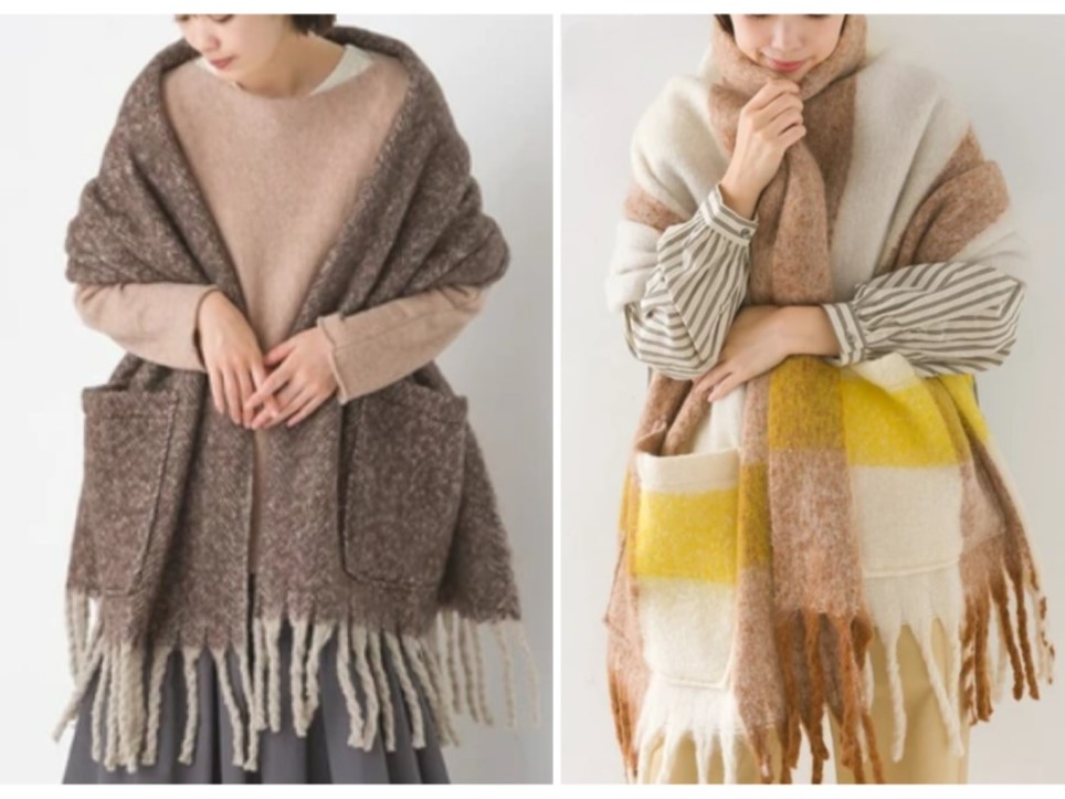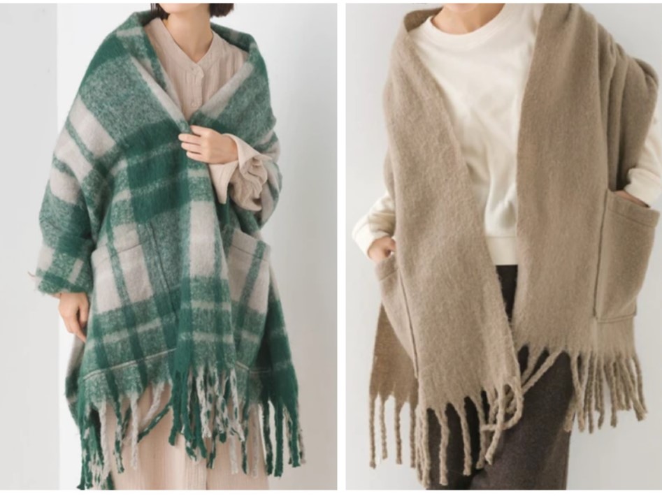 マフラーやひざ掛け、肩にかけて着用できる便利なアイテムで
