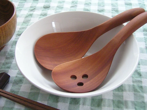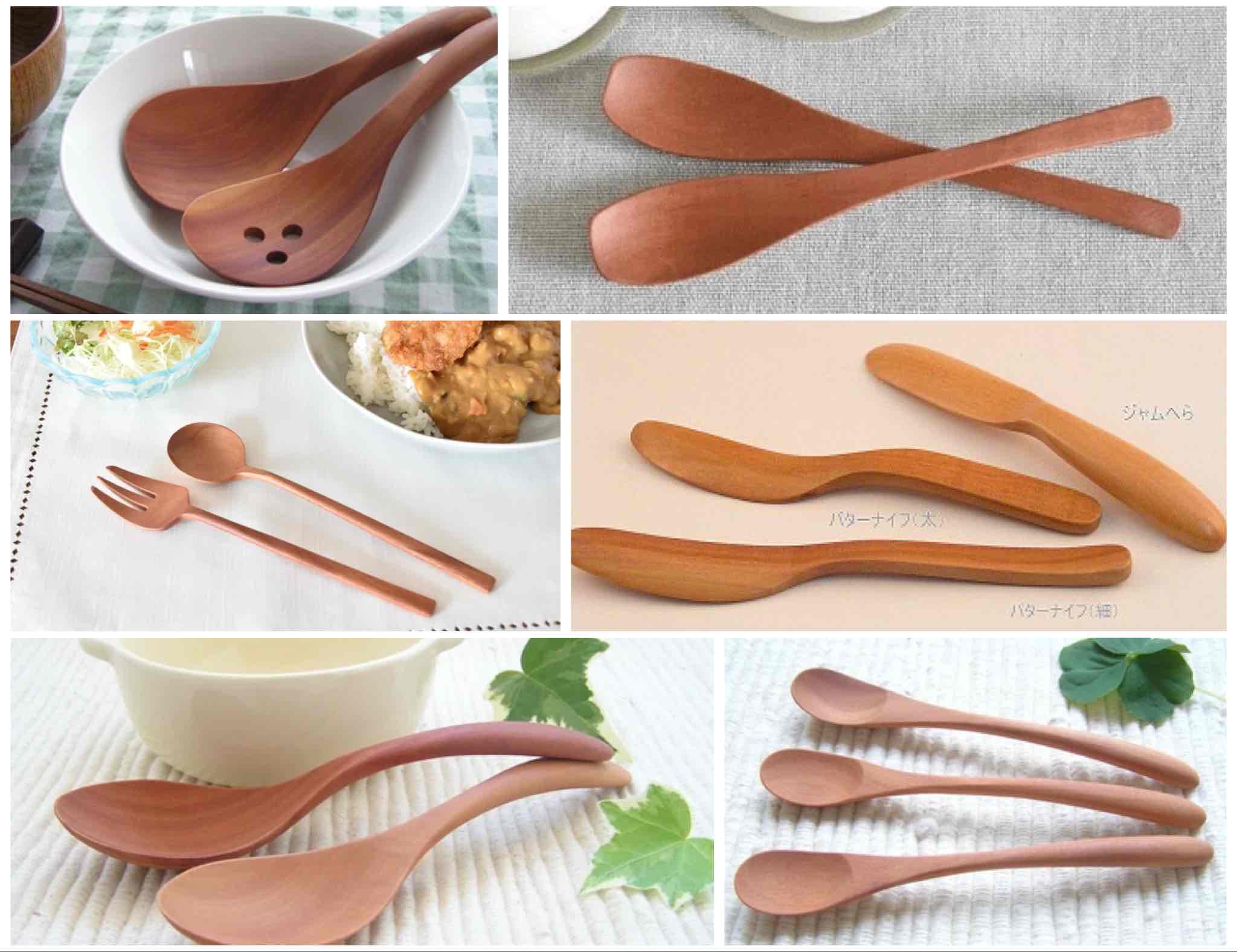 くちびるに熱くなく、やさしい温かさで接してくれる木のカトラリーは、食べ物さえもやさしく、おいしく 運んでくれます。
