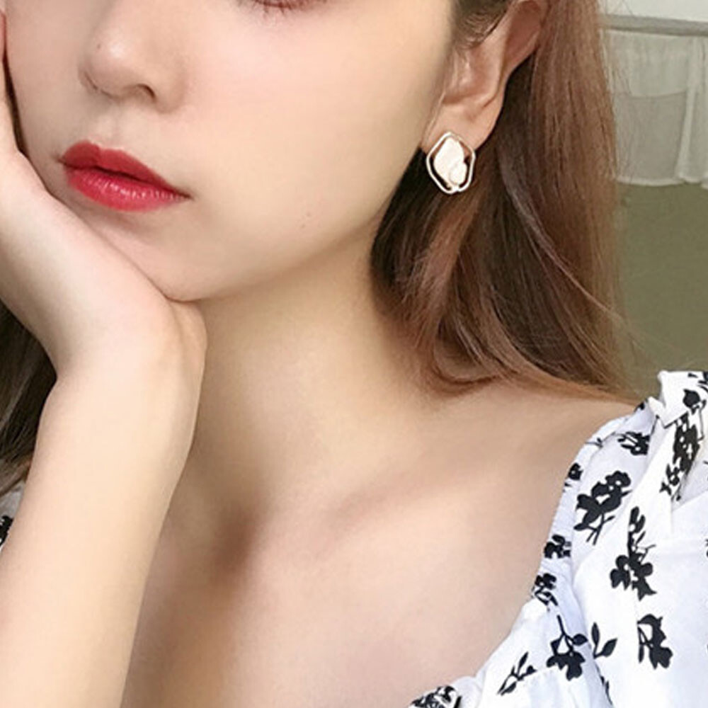はめこんだようなデザインの小ぶりイヤリングです。